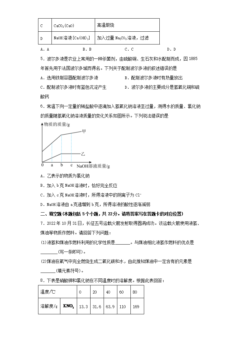 2023年内蒙古包头中考化学真题及答案(Word版)07-05