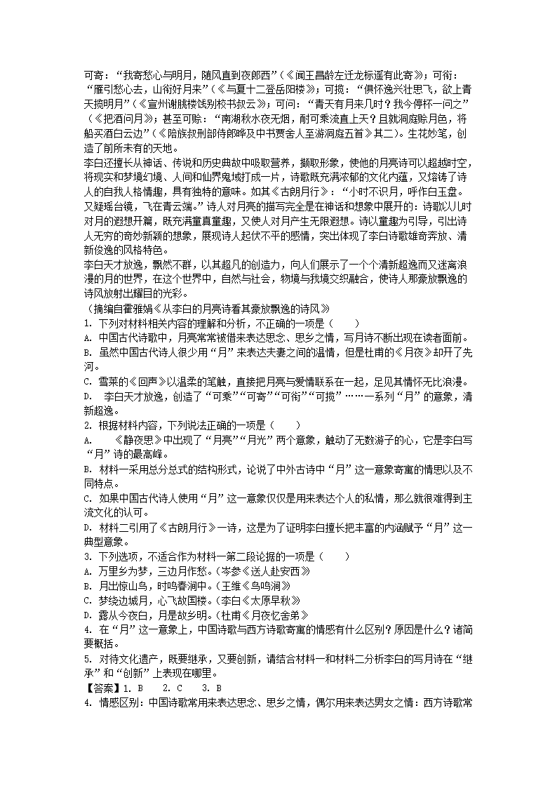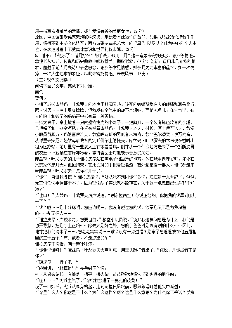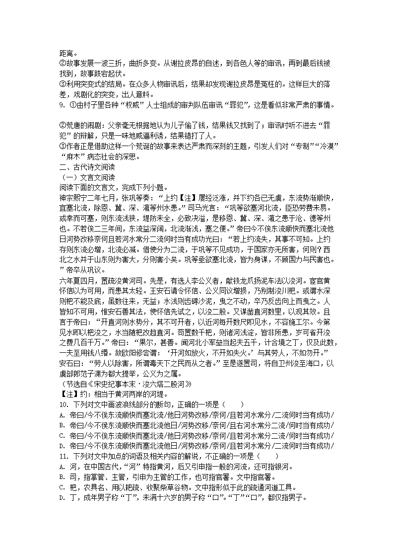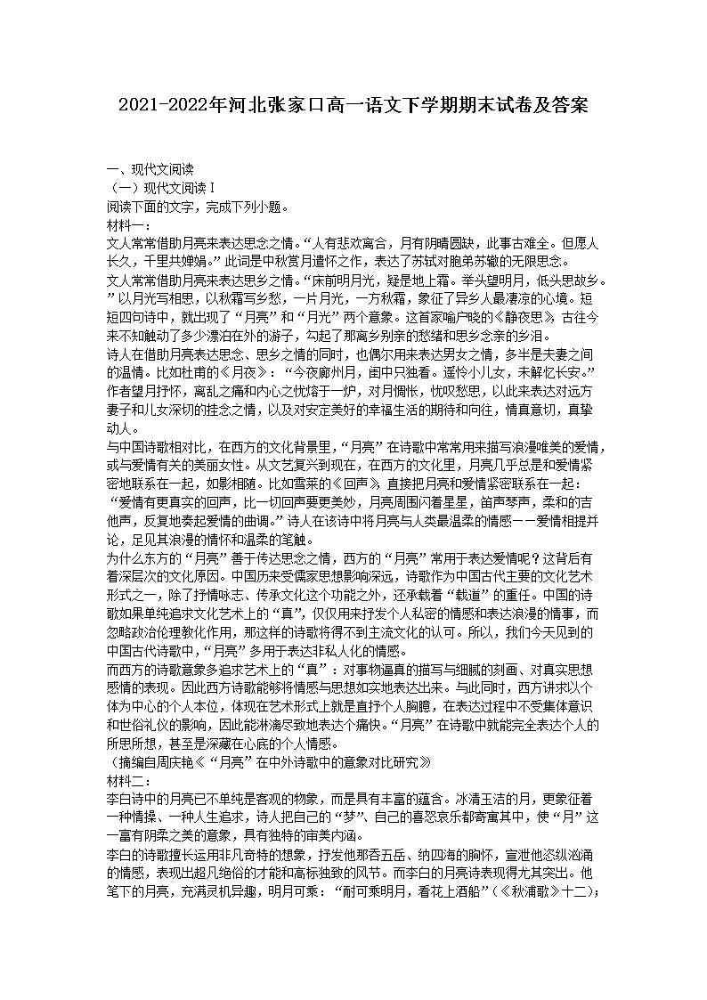 2021-2022年河北张家口高一语文下学期期末试卷及答案(Word版)08-01