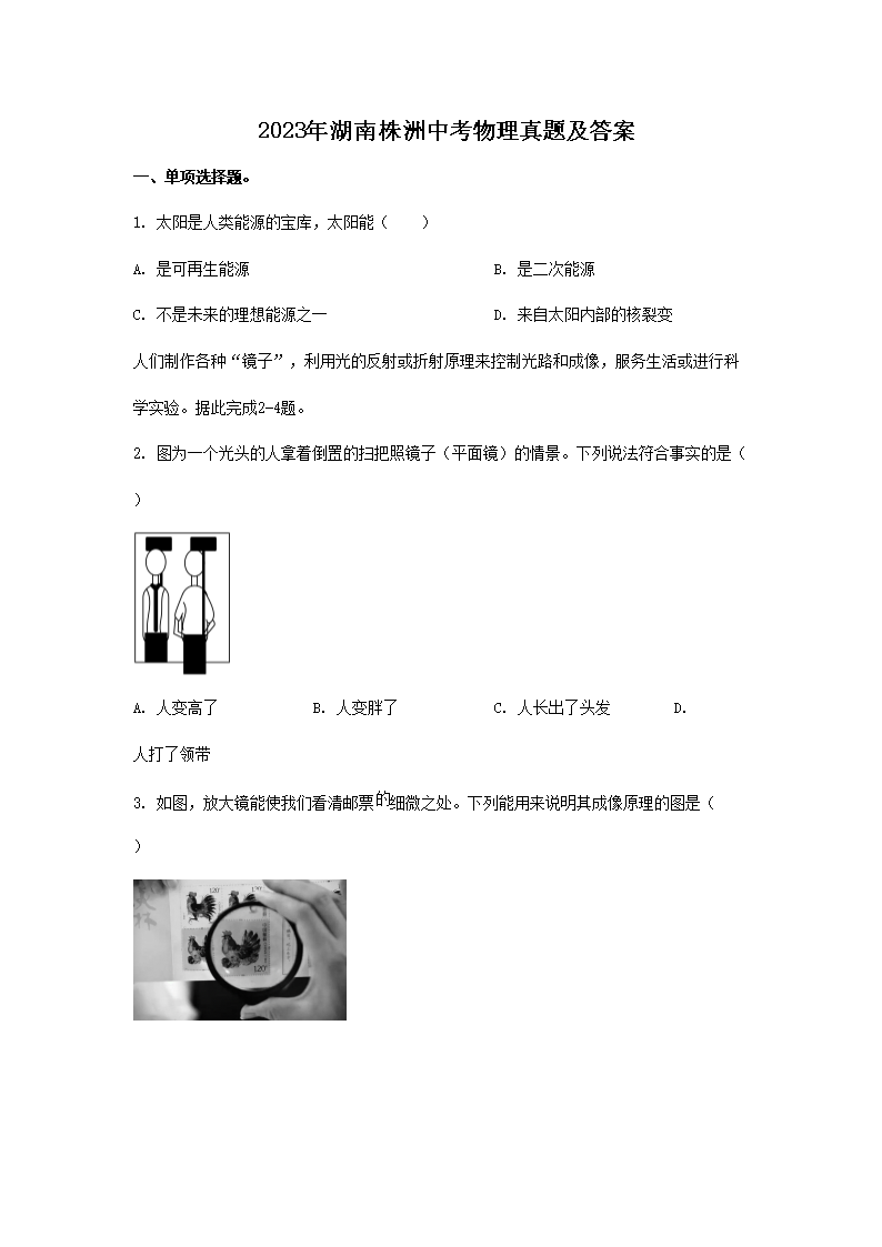 【文档预览】 文档大全网整理发布2023年湖南株洲中考物理真题及答案(Word版),前五页预览如下: