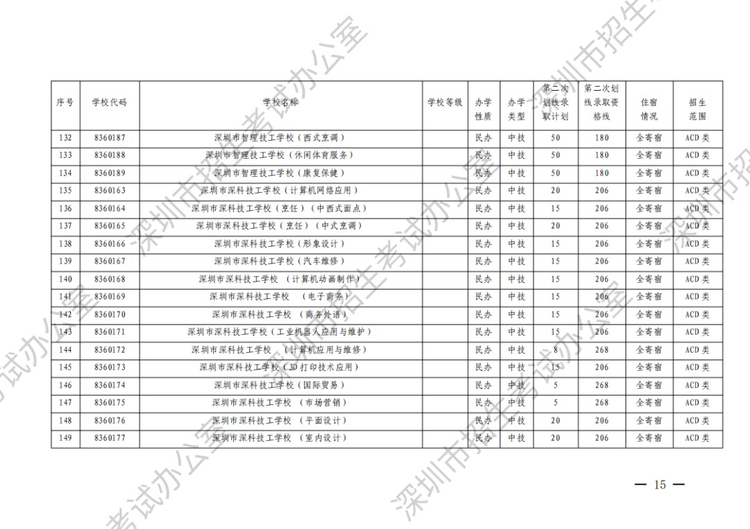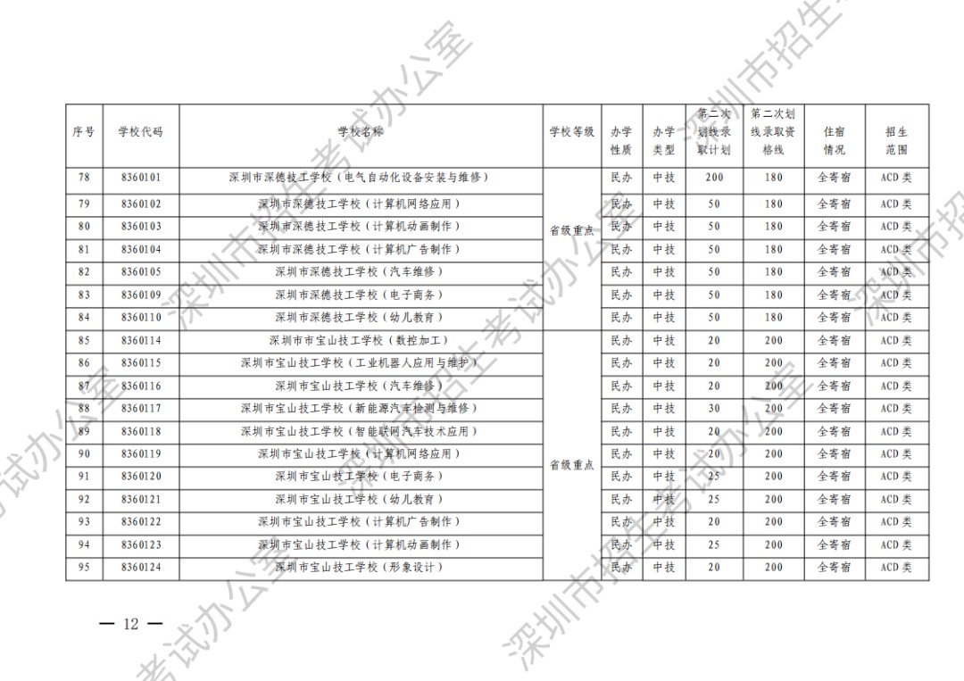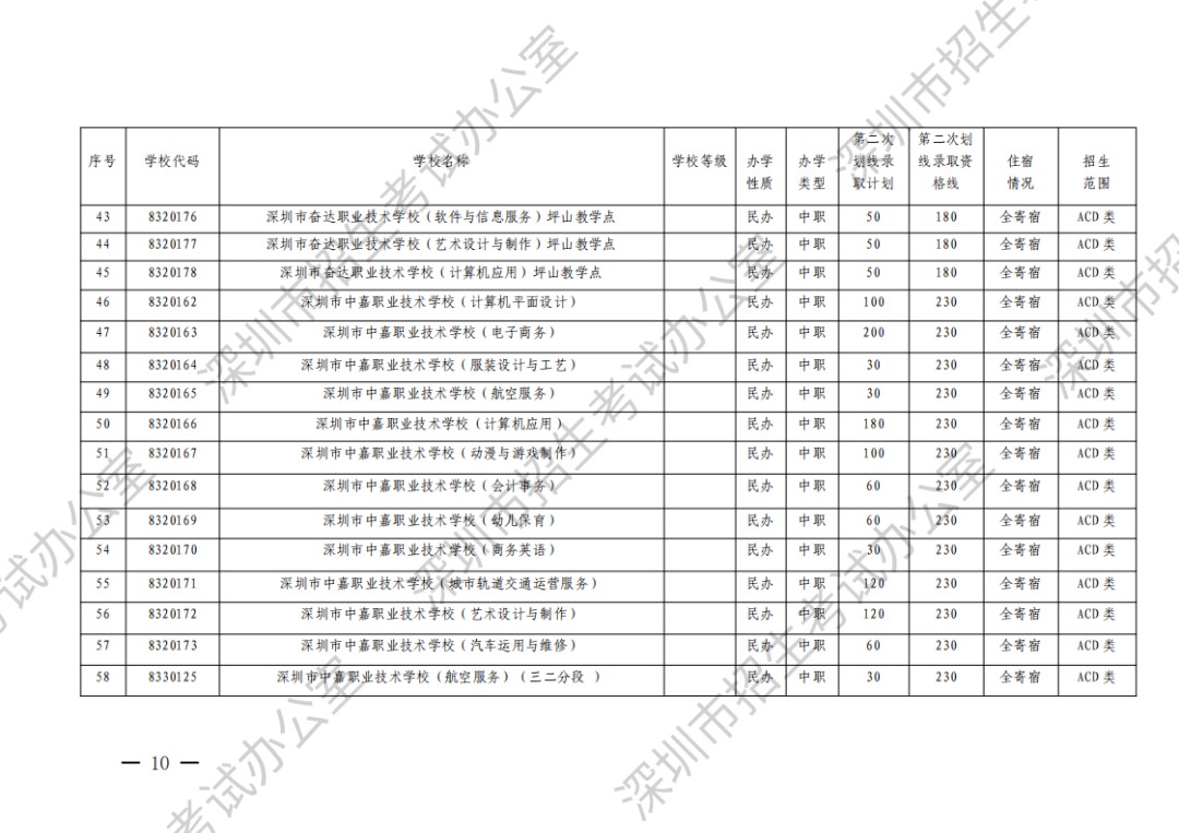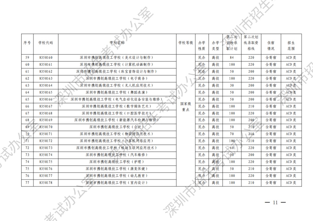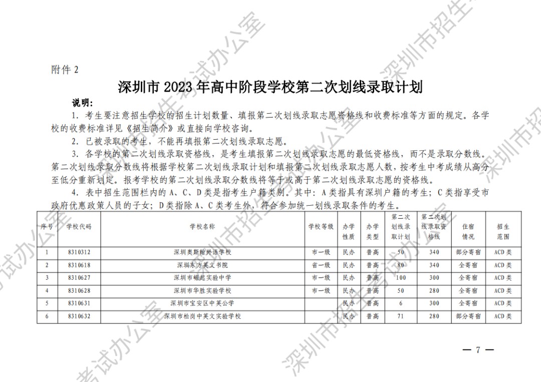 深圳市2023年高中阶段学校第二次划线录取计划