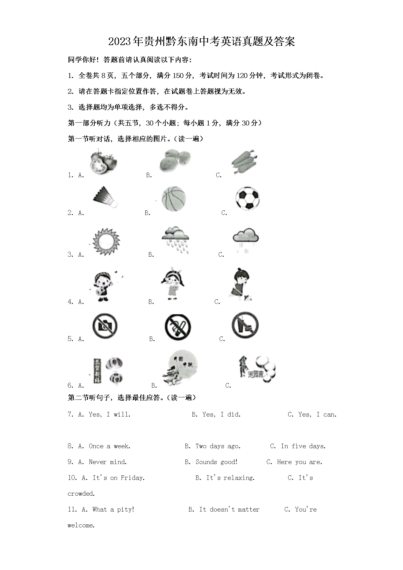【文档预览】 文档大全网整理发布2023年贵州黔东南中考英语真题及答案(Word版),前五页预览如下: