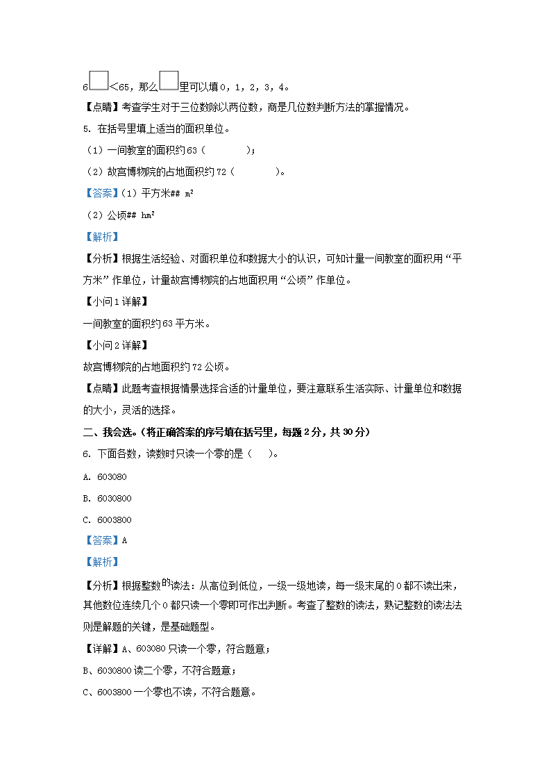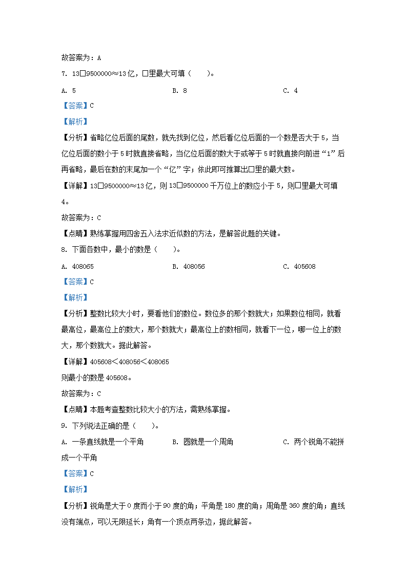 2022-2023学年湖南省岳阳市华容县四年级上学期期末数学真题及答案(Word版)10-14