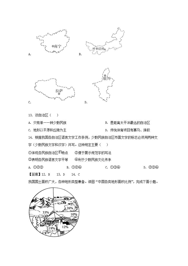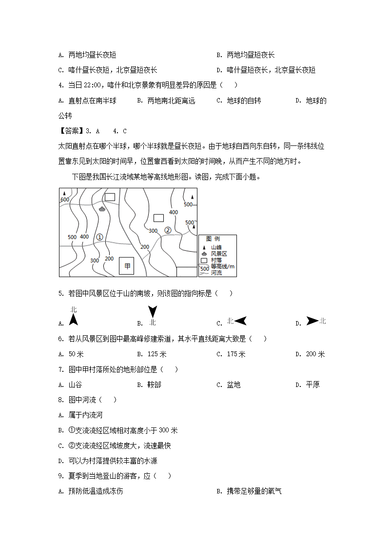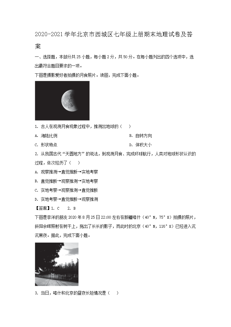2020-2021学年北京市西城区七年级上册期末地理试卷及答案(Word版)07-29