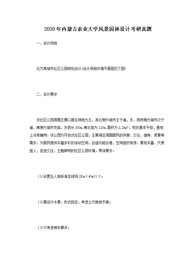 2020年内蒙古农业大学风景园林设计考研真题(Word版)07-25