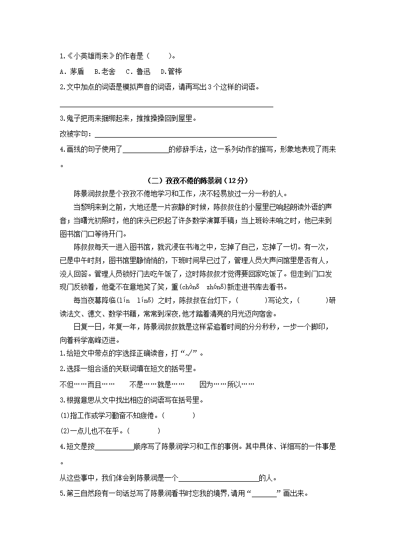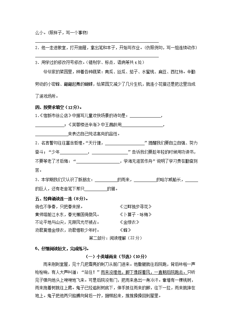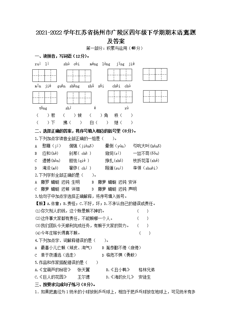 2021-2022学年江苏省扬州市广陵区四年级下学期期末语文真题及答案(Word版)09-21