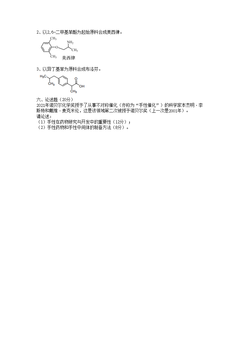 2023年湖北武汉工程大学药物化学考研真题(Word版)10-14
