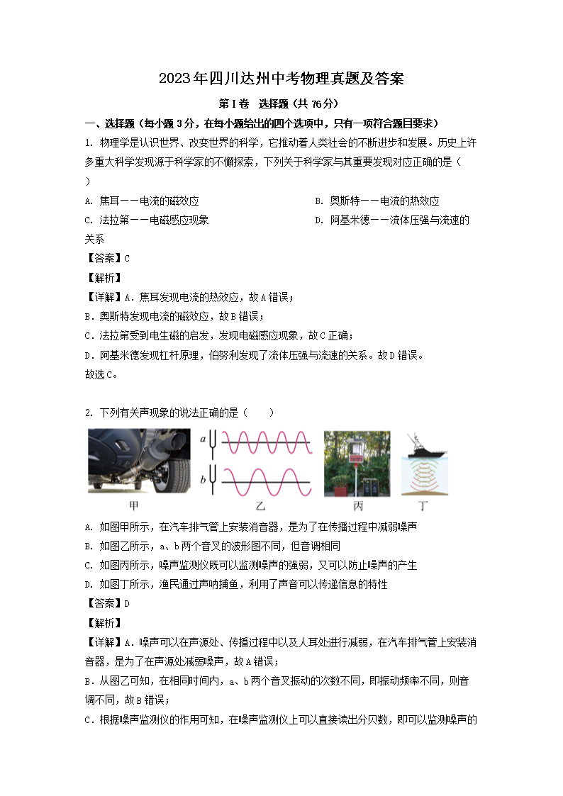 【文档预览】 文档大全网整理发布2023年四川达州中考物理真题及答案(Word版),前五页预览如下:
