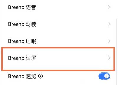 3、将【Breeno识屏】右侧的开关开启即可。