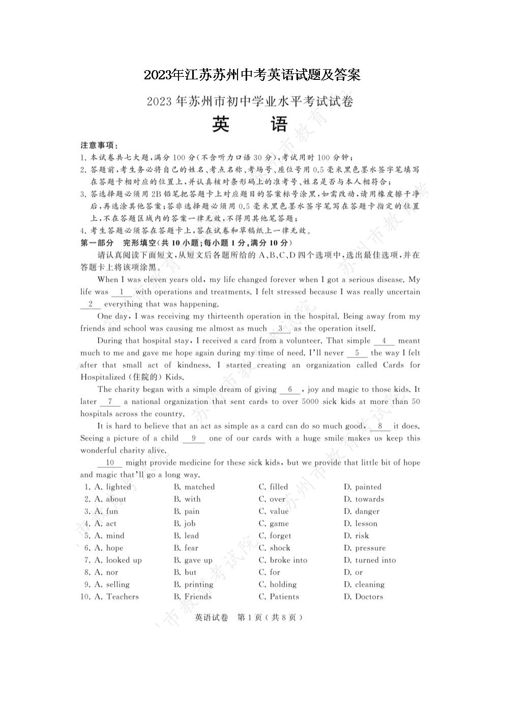 2023年江苏苏州中考英语试题及答案(图片版)06-21
