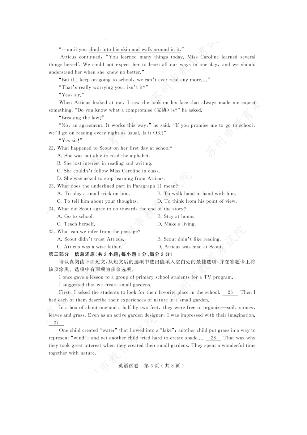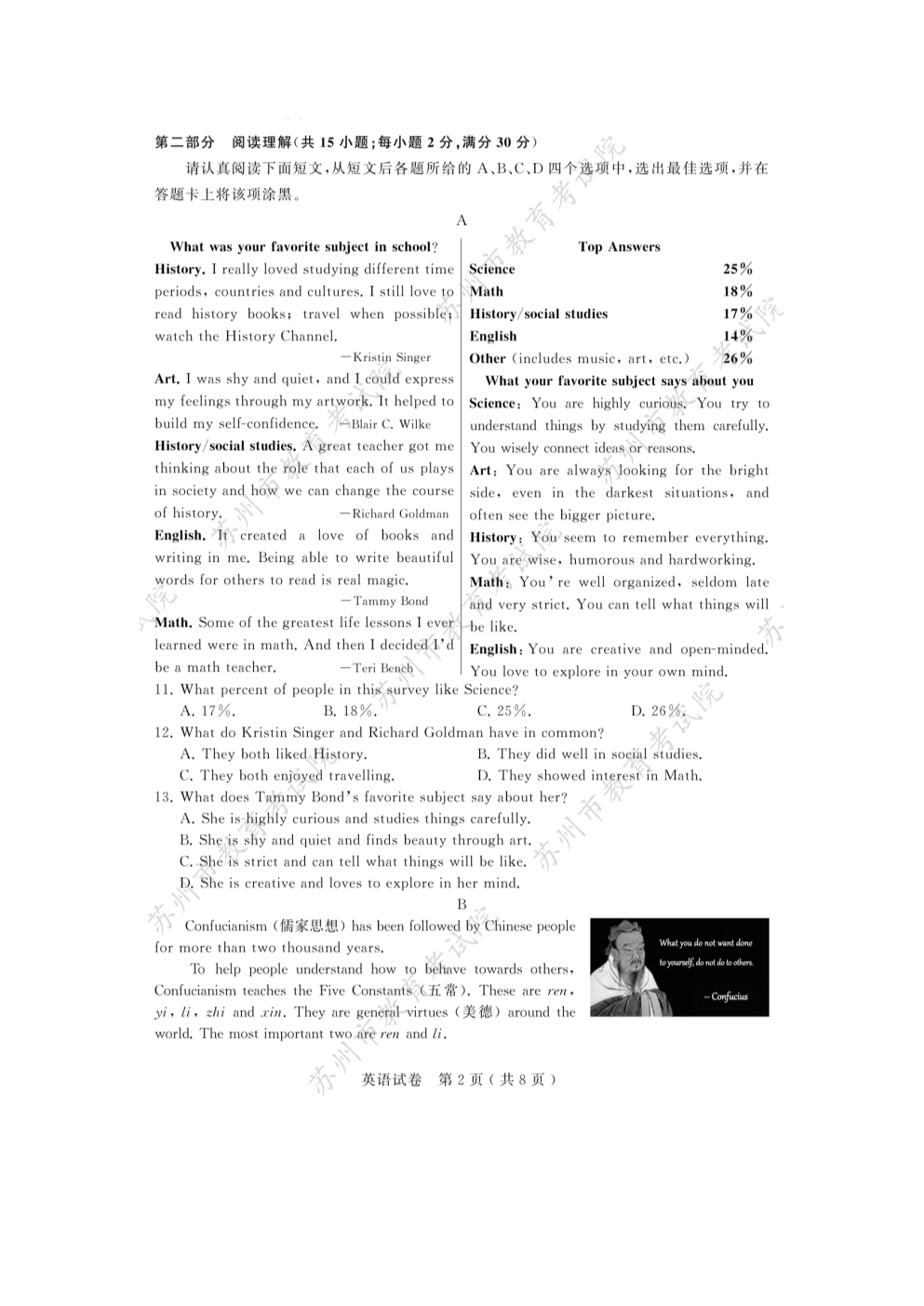 【文档预览】 文档大全网整理发布2023年江苏苏州中考英语试题及答案(图片版),前五页预览如下:
