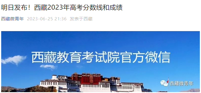 【#高考# 导语】®文档大全网从西藏微青年了解到,2023年西藏高考成绩和分数线将于6月26日公布,考生可通过以下方式查分,相关事宜如下: