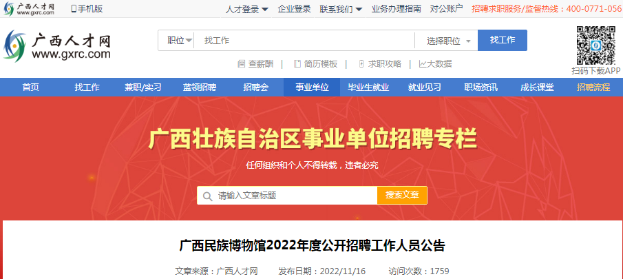原文标题:广西民族博物馆2022年度公开招聘工作人员公告