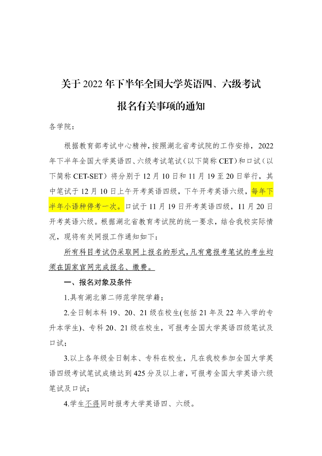 原文标题:关于2022年下半年全国大学英语四、六级考试 报名有关事项的通知