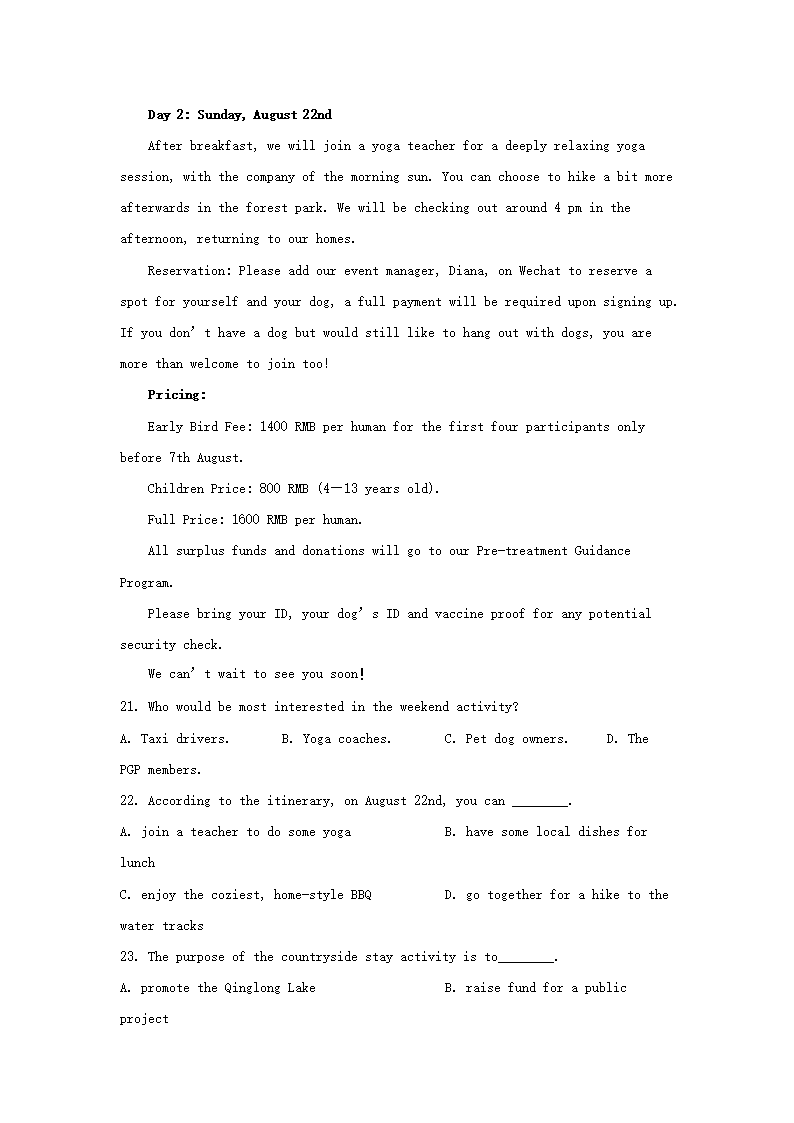 2020-2021年北京市房山区高二英语下学期期末试题及答案(Word版)09-28