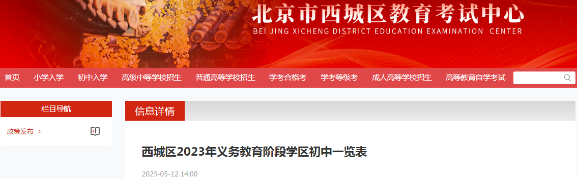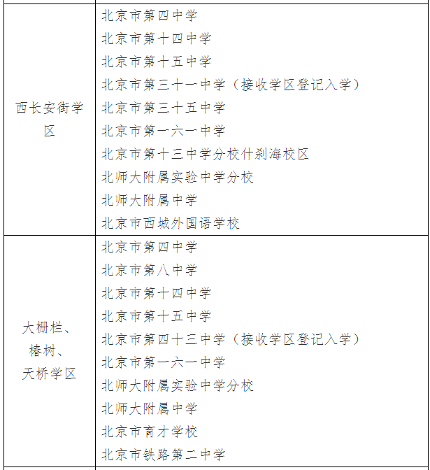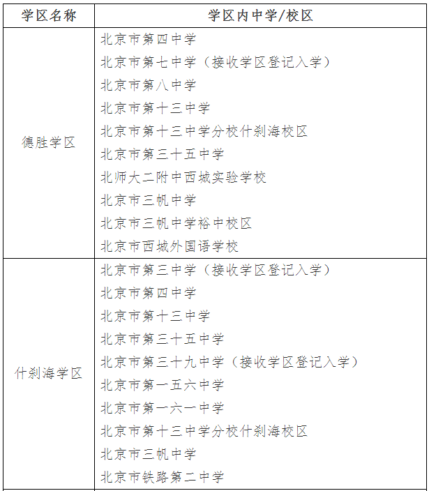 原文标题:西城区2023年义务教育阶段学区初中一览表