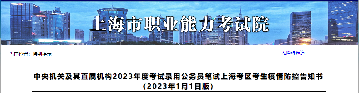 原文标题:中央机关及其直属机构2023年度考试录用公务员笔试上海考区考生疫情防控告知书(2023年1月1日版)