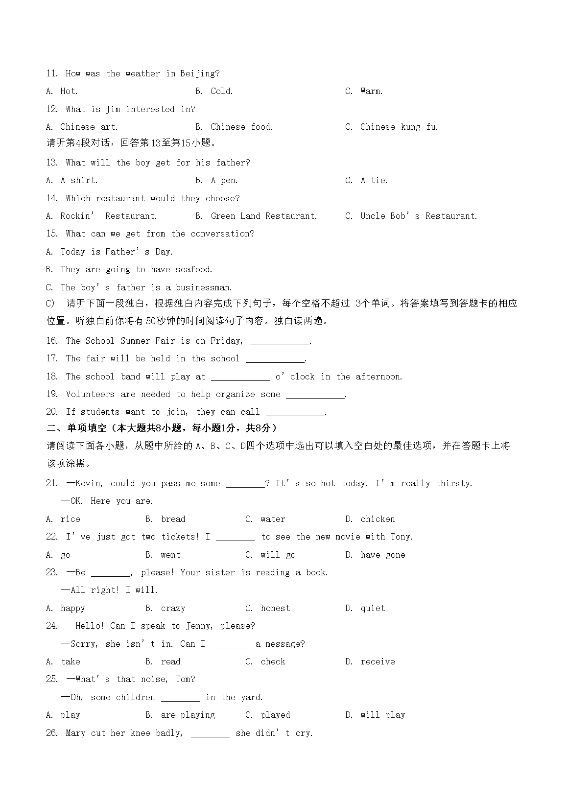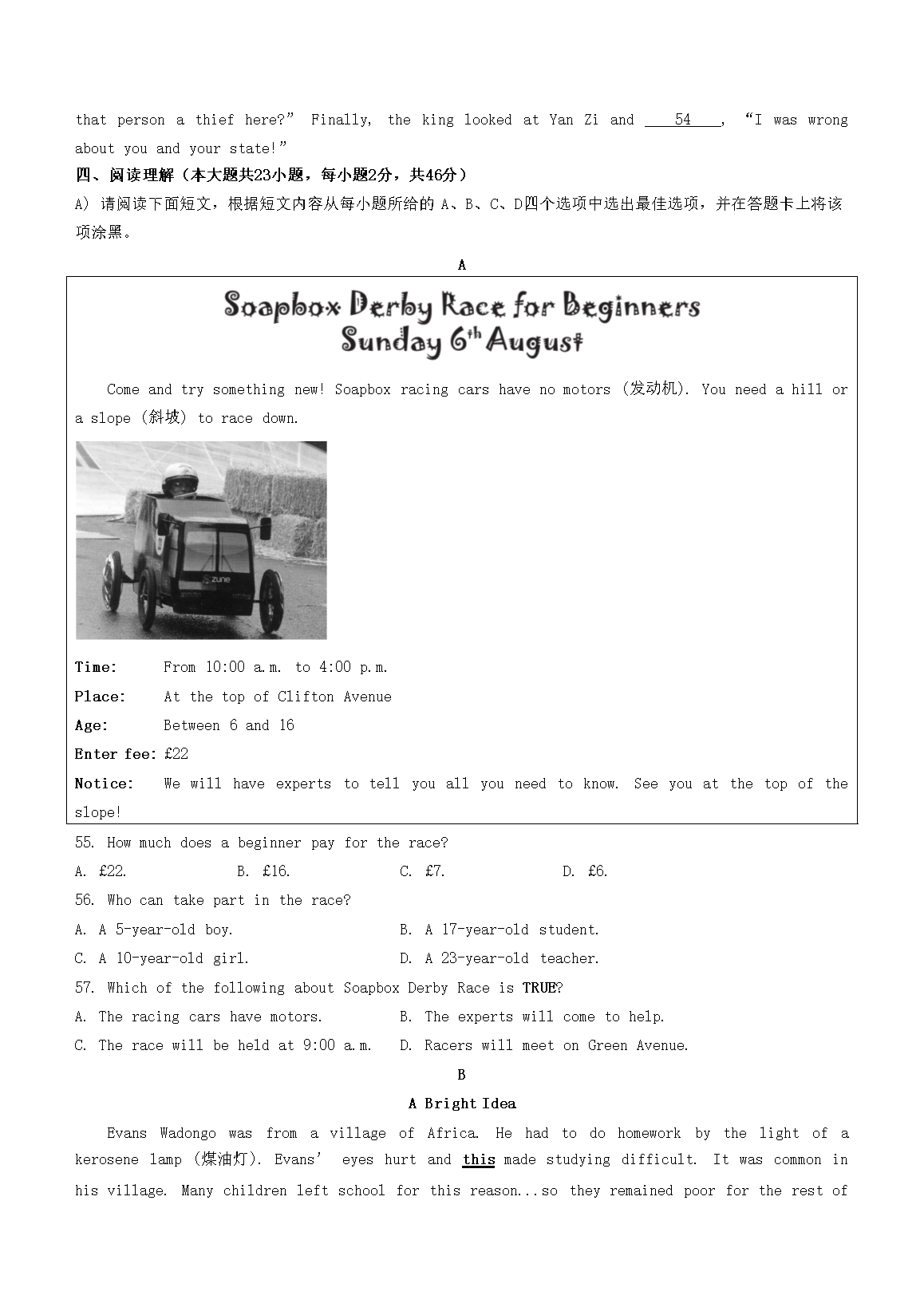 【文档预览】 文档大全网整理发布2023年江西中考英语真题及答案(Word版),前五页预览如下: