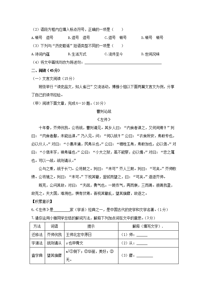 2023年吉林通化中考语文试题及答案(Word版)07-07