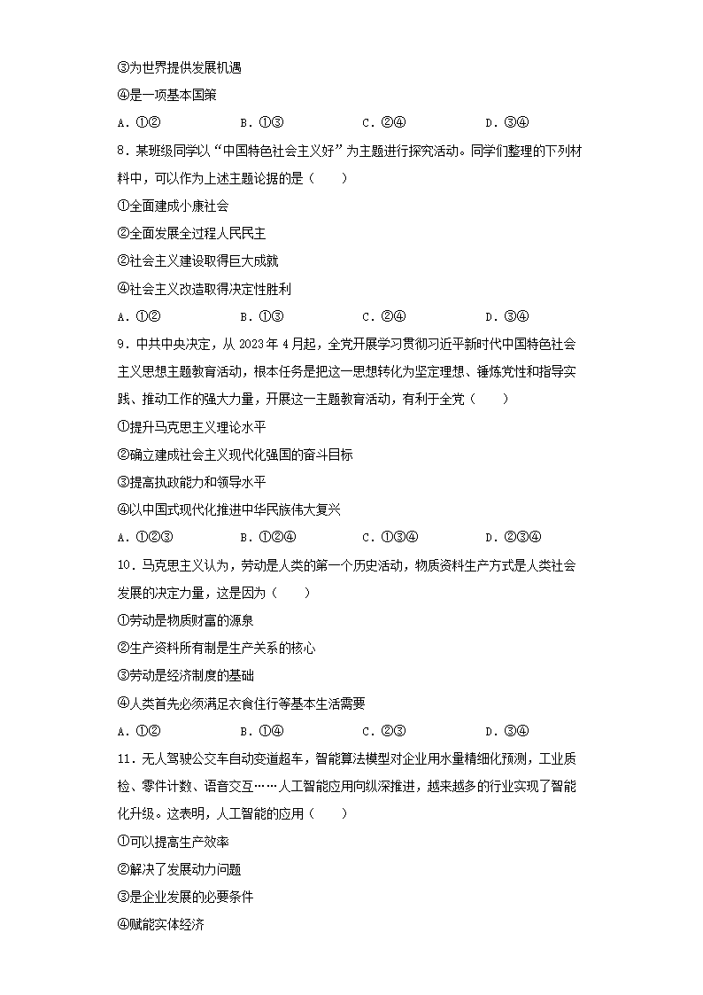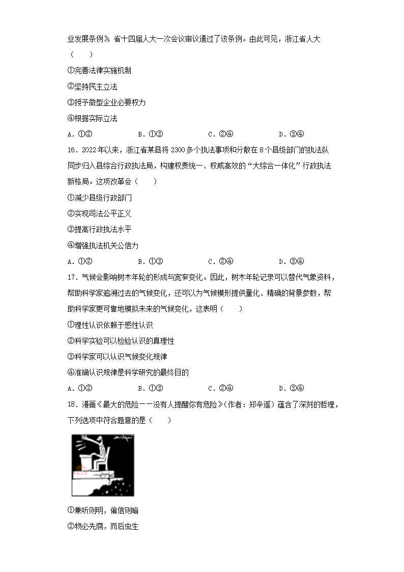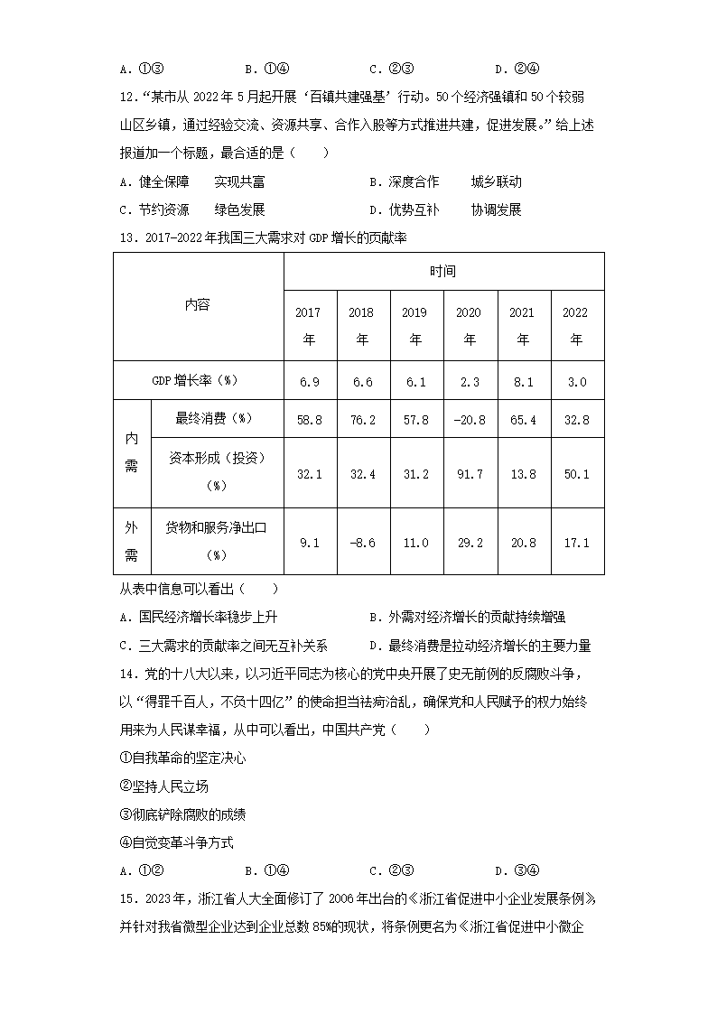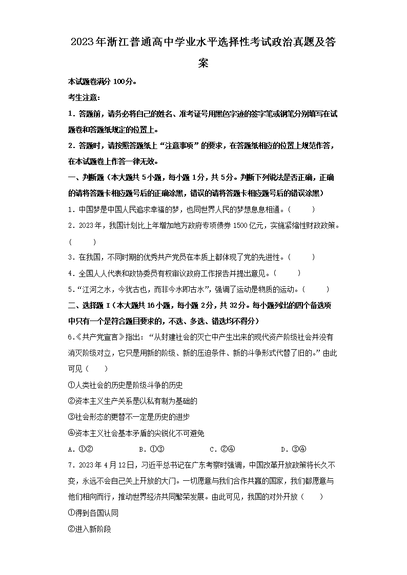 2023年浙江普通高中学业水平选择性考试政治真题及答案(Word版)07-13
