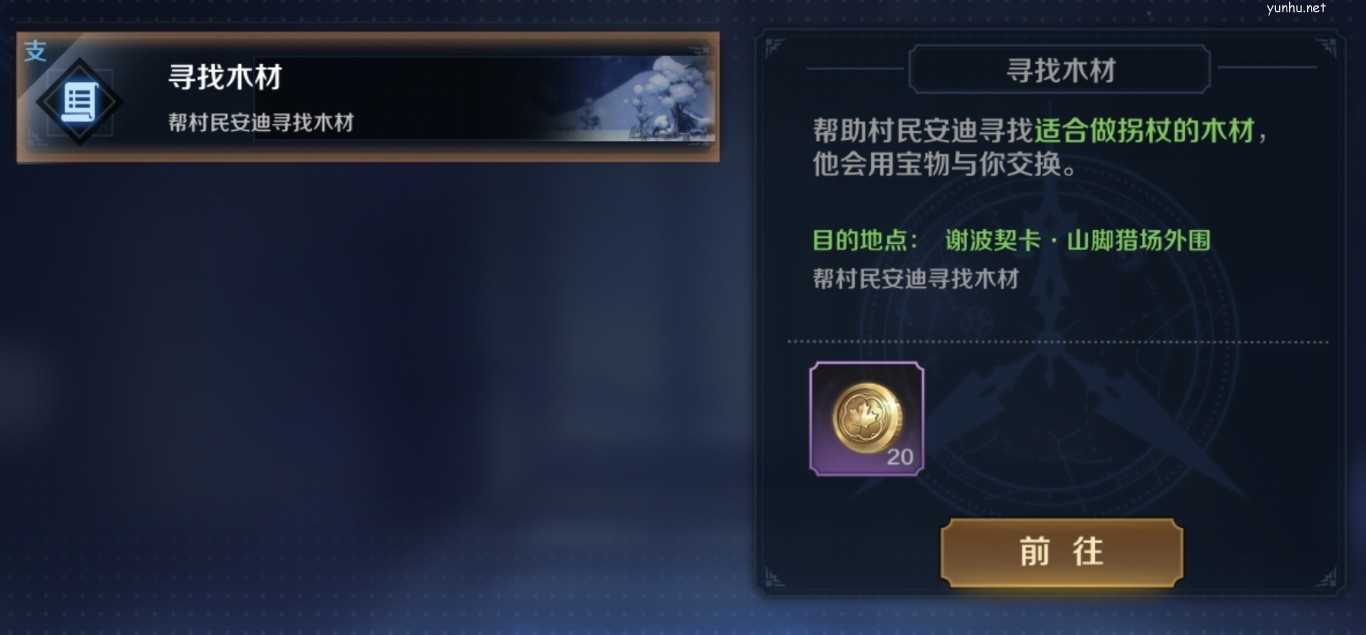 1、玩家可以根据任务的提示前往【谢波契卡·山脚猎场外围】。