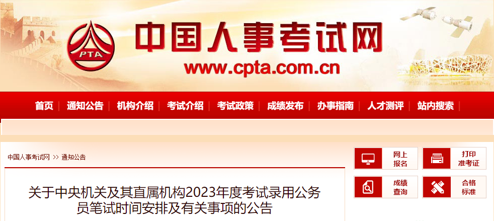 原文标题:关于中央机关及其直属机构2023年度考试录用公务员笔试时间安排及有关事项的公告