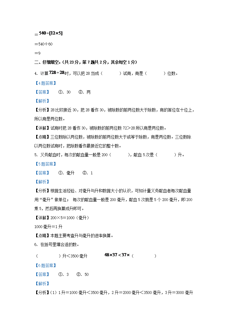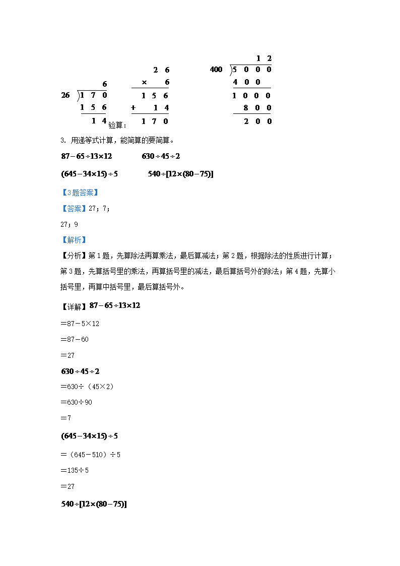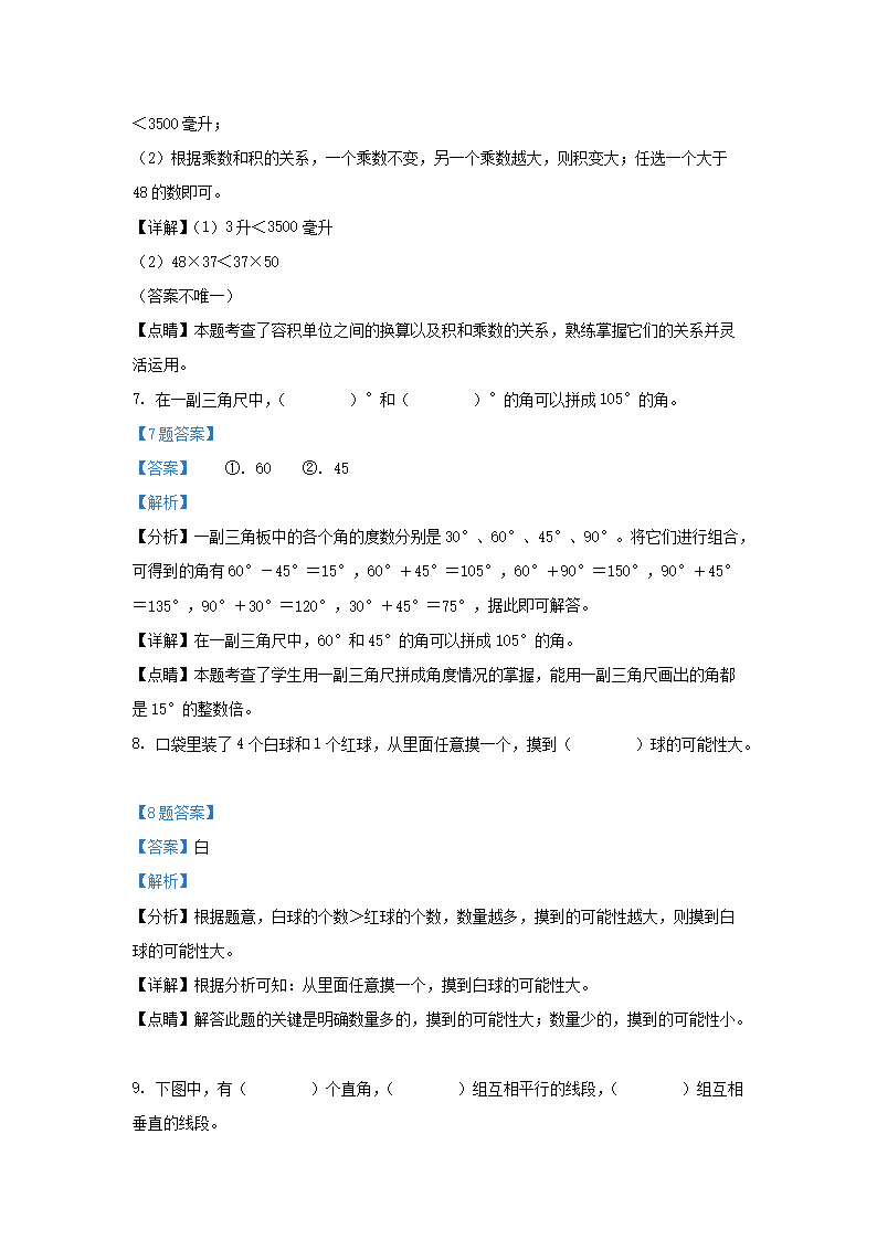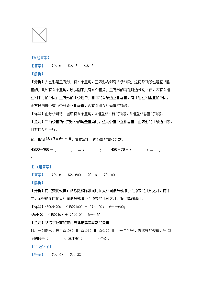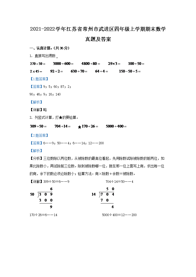 2021-2022学年江苏省常州市武进区四年级上学期期末数学真题及答案(Word版)07-22