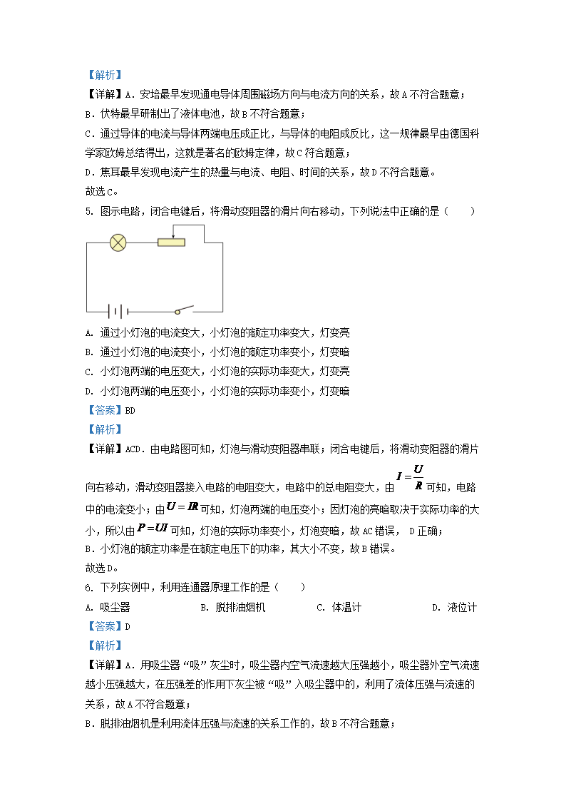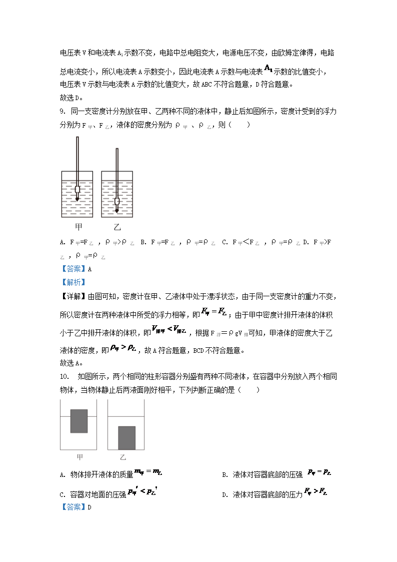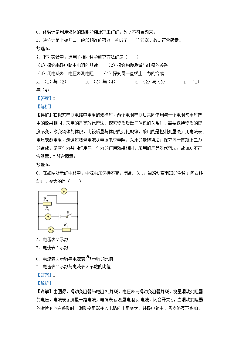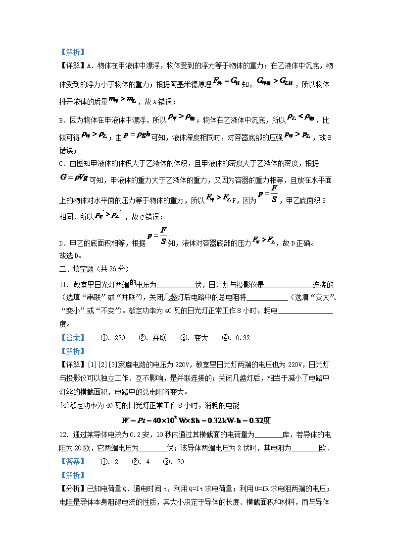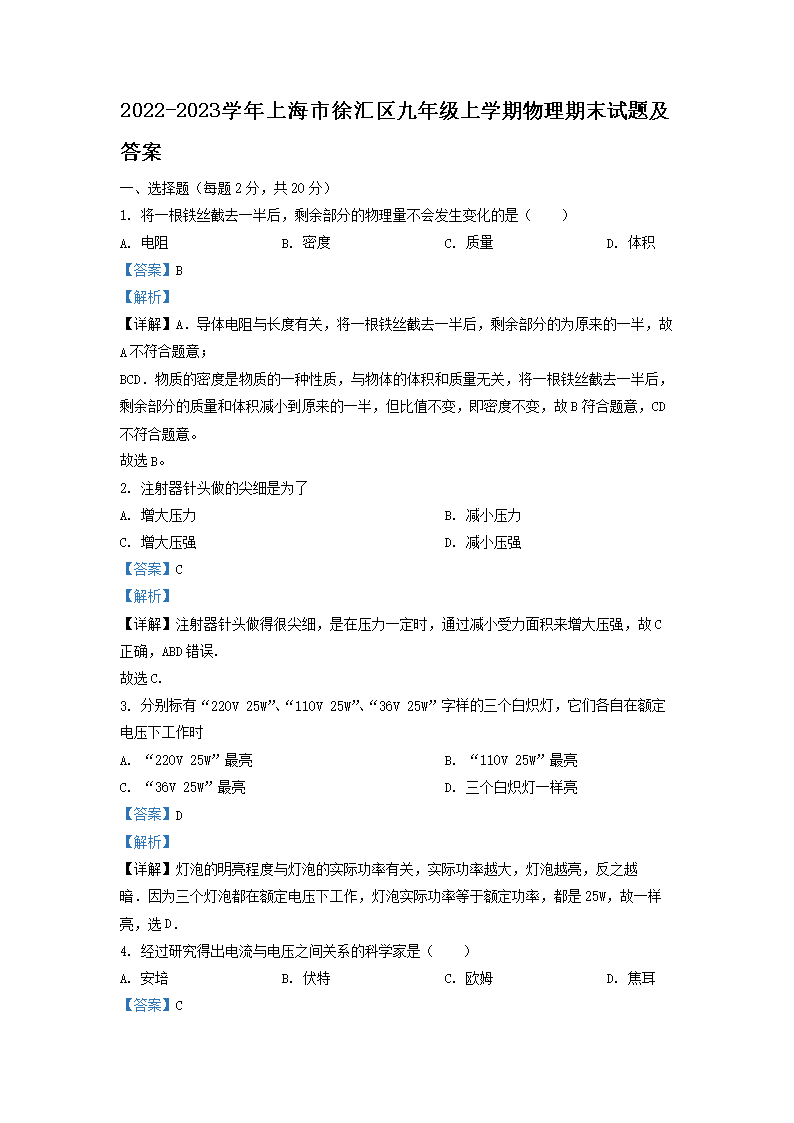2022-2023学年上海市徐汇区九年级上学期物理期末试题及答案(Word版)10-24
