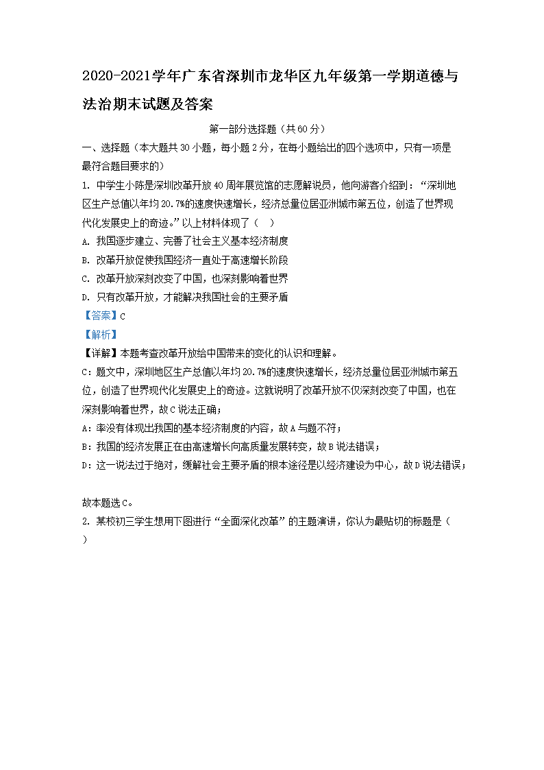 【文档预览】 文档大全网整理发布2020-2021学年广东省深圳市龙华区九年级第一学期道德与法治期末试题及答案(Word版),前五页预览如下: