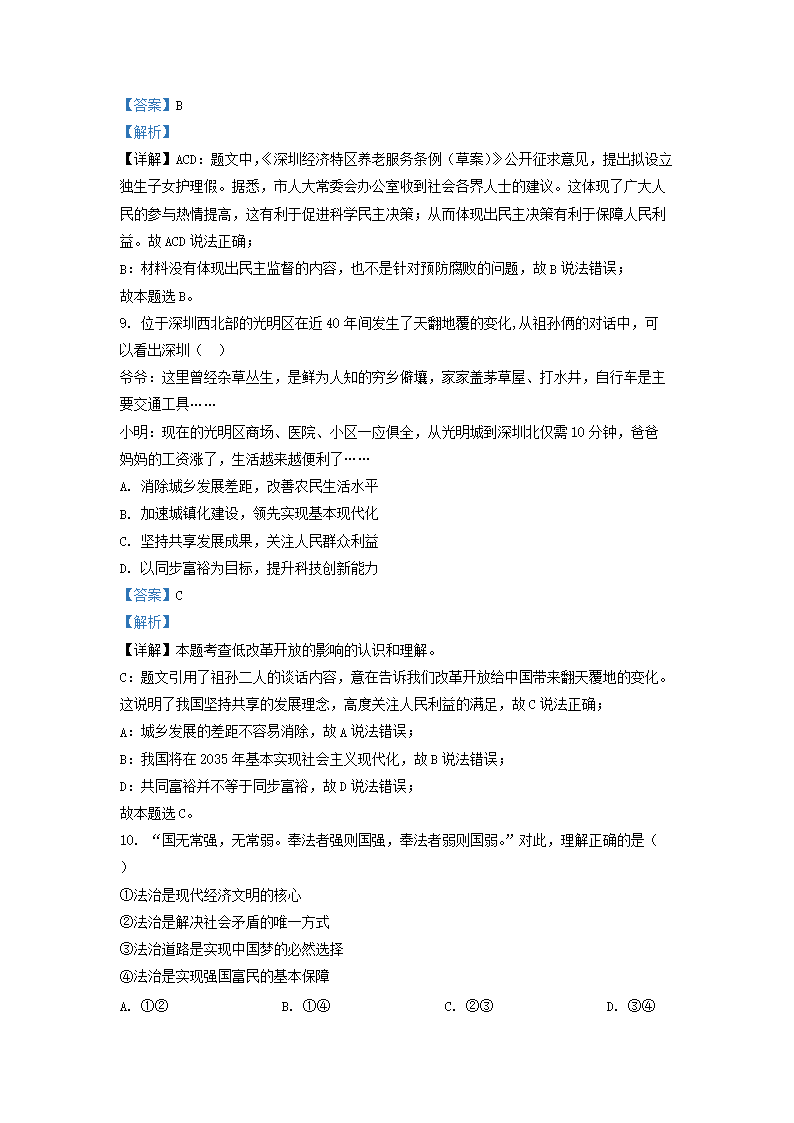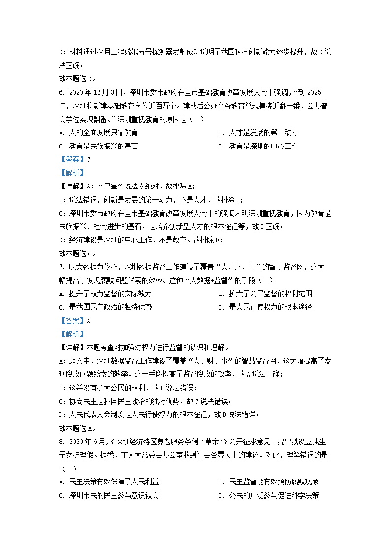 2020-2021学年广东省深圳市龙华区九年级第一学期道德与法治期末试题及答案(Word版)08-22