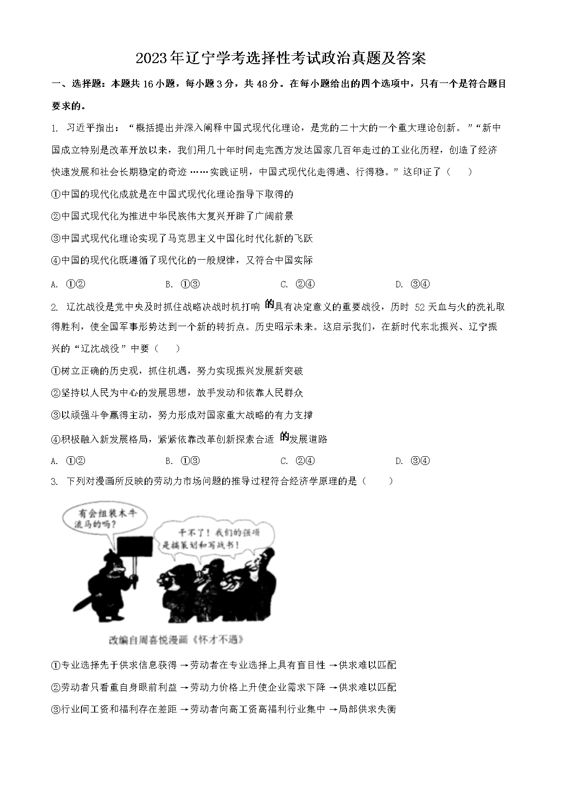【文档预览】 文档大全网整理发布2023年辽宁学考选择性考试政治真题及答案(Word版),前五页预览如下: