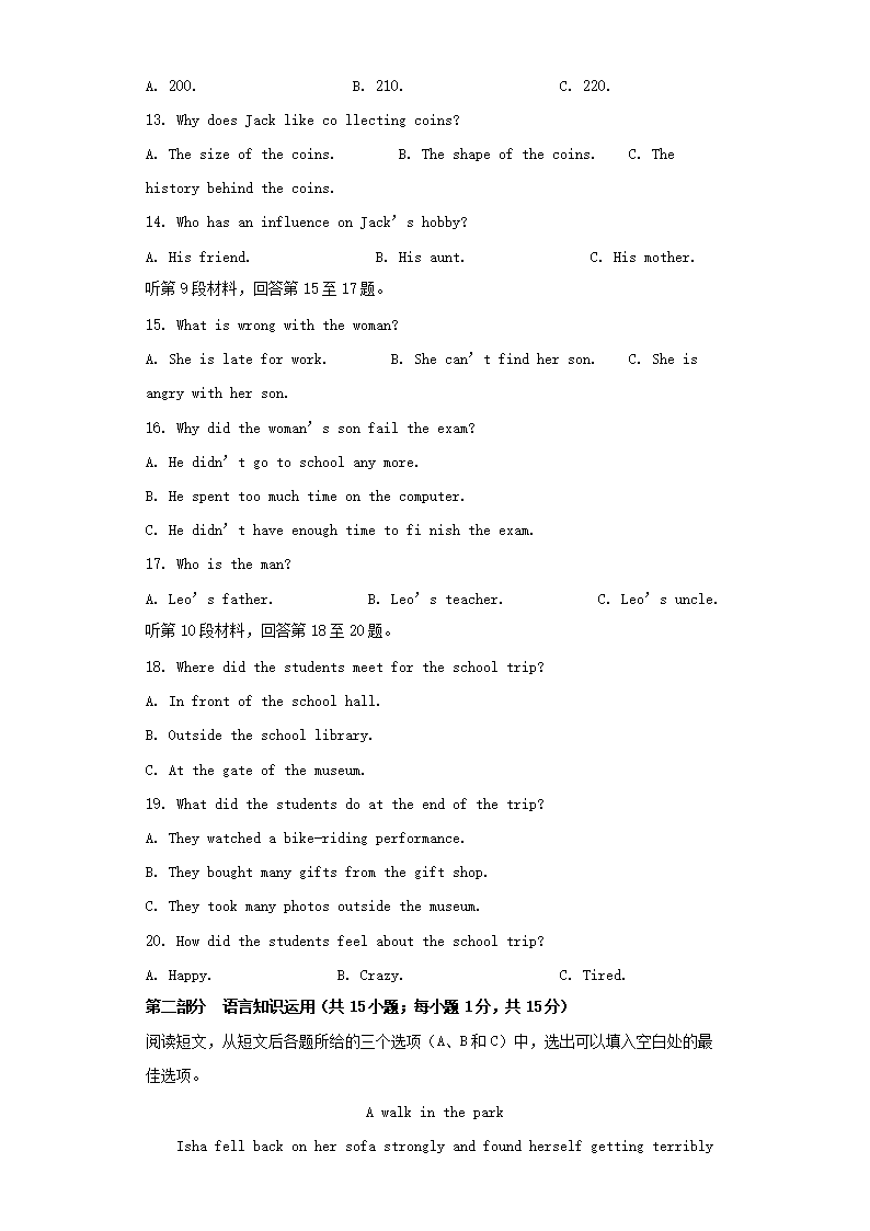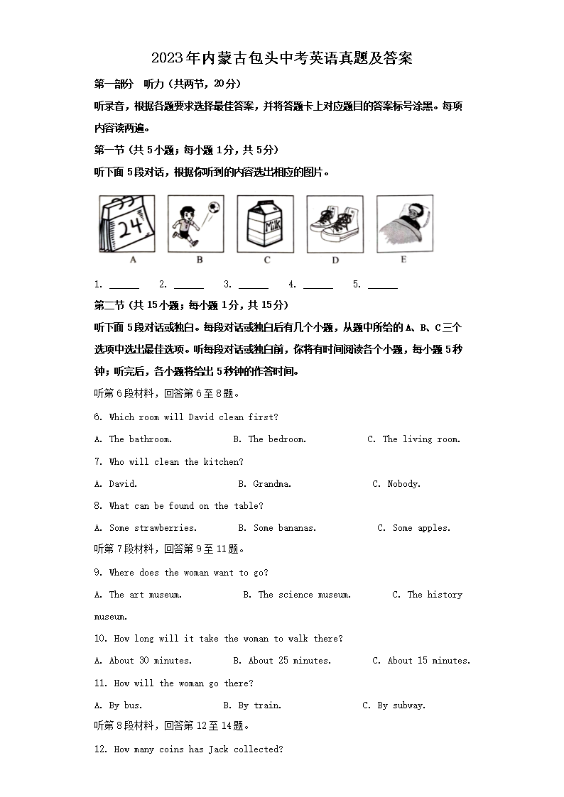 2023年内蒙古包头中考英语真题及答案(Word版)07-05