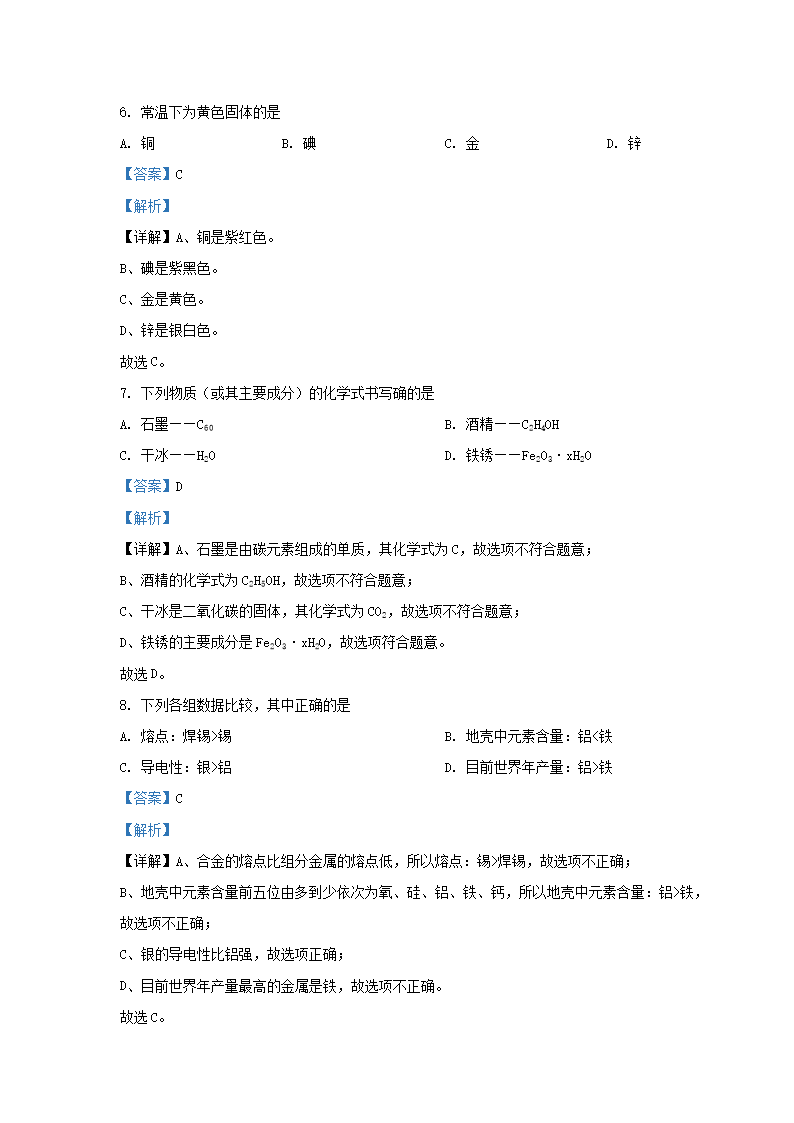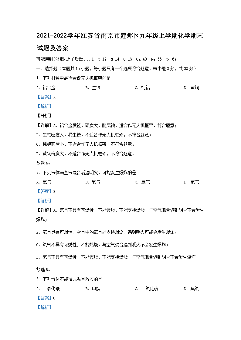 2021-2022学年江苏省南京市建邺区九年级上学期化学期末试题及答案(Word版)09-16
