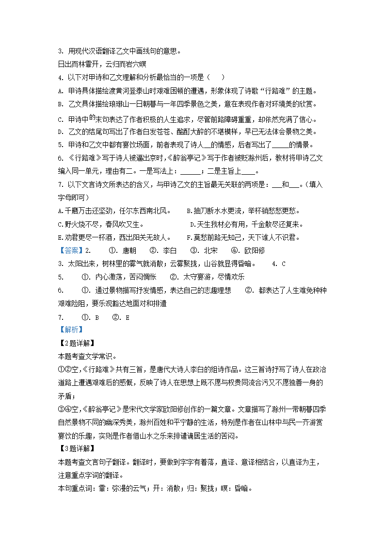 2022-2023学年上海市黄浦区九年级上学期语文第二次月考试题及答案(Word版)10-18