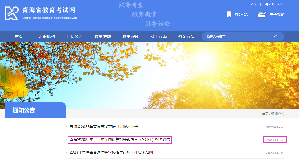 2023年9月青海计算机等级考试时间:9月23日-24日06-28