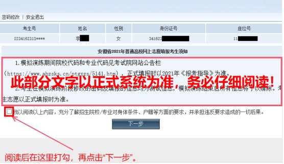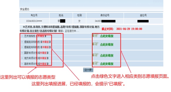 “下一步”按钮:录入完院校代码和专业代码后点击进入志愿校对和确认页面。