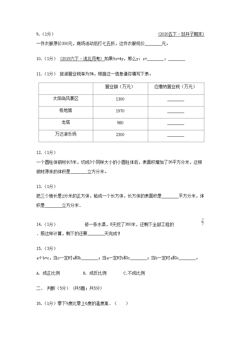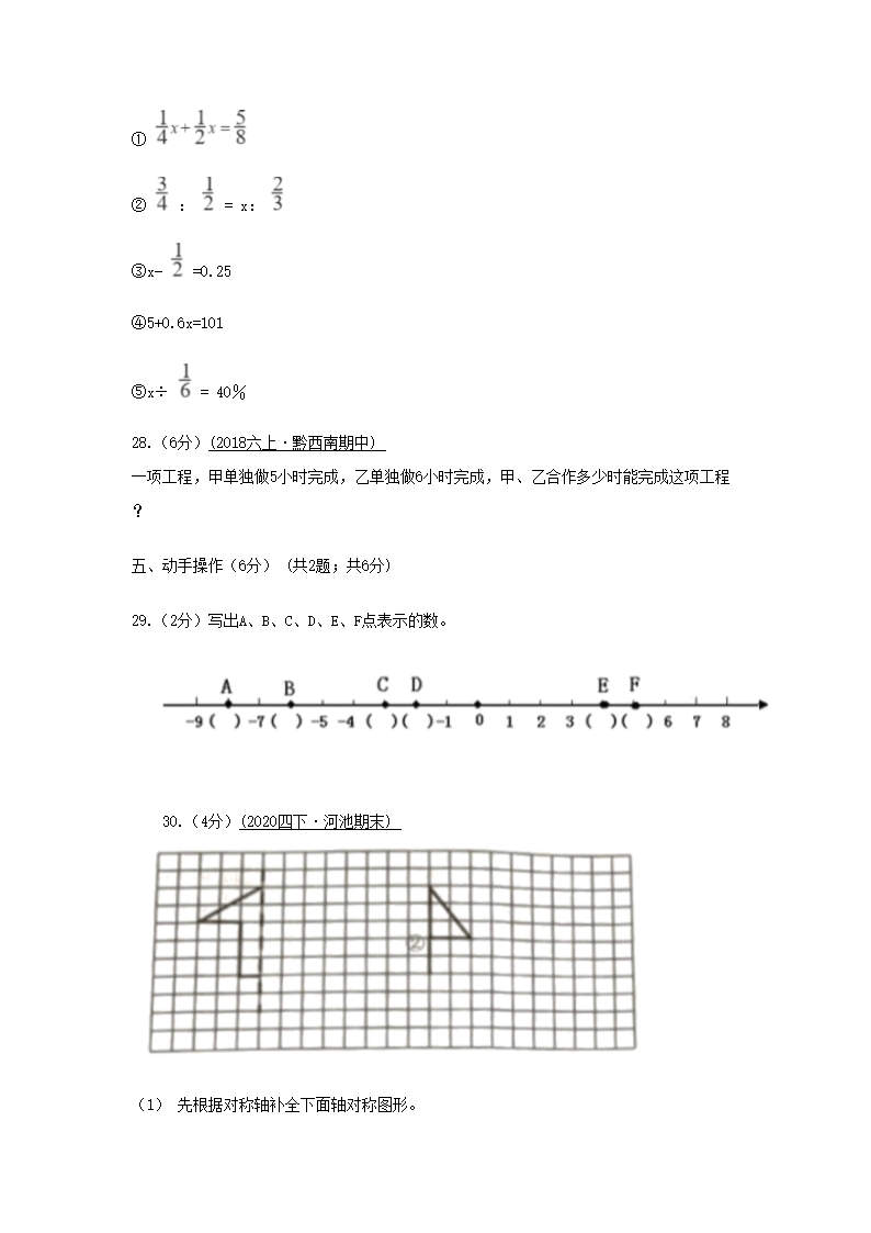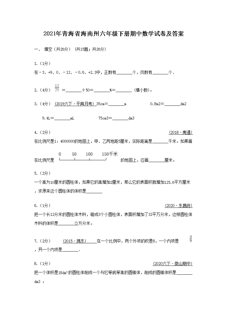 2021年青海省海南州六年级下册期中数学试卷及答案(Word版)09-01