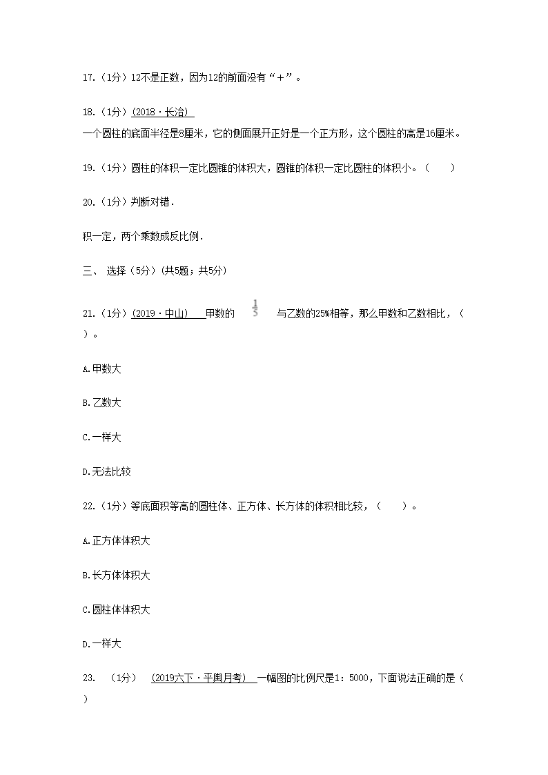 【文档预览】 文档大全网整理发布2021年青海省海南州六年级下册期中数学试卷及答案(Word版),前五页预览如下: