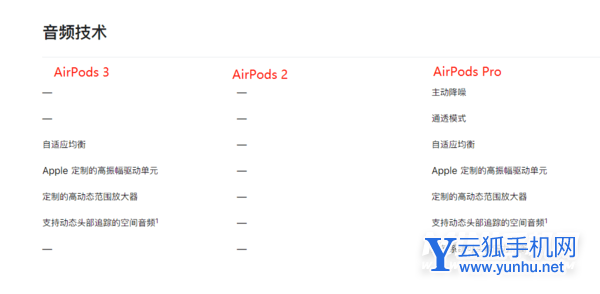 在音频技术方面,AirPods 3基本和AirPods Pro看齐了,大家可以看一下这个对比,除了主动降噪和通透模式以及通气系统是Pro独占之外,AirPods 2所缺失的都安排上了。另外这次无线充电成为了标配。