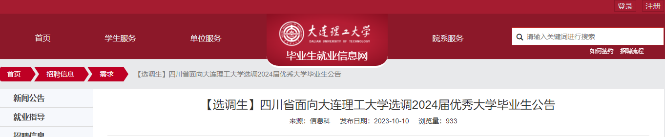 【#选调生考试# #四川省面向大连理工大学选调2024届优秀大学毕业生公告#】©文档大全网从大连理工大学了解到,四川省面向大连理工大学选调2024届优秀大学毕业生,报名时间:2023年10月18日-25日,考试时间:2023年11月11日,相关事宜详情如下: