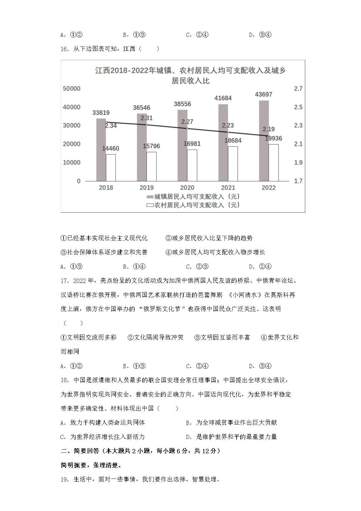 2023年江西鹰潭中考道德与法治试题及答案(Word版)07-01