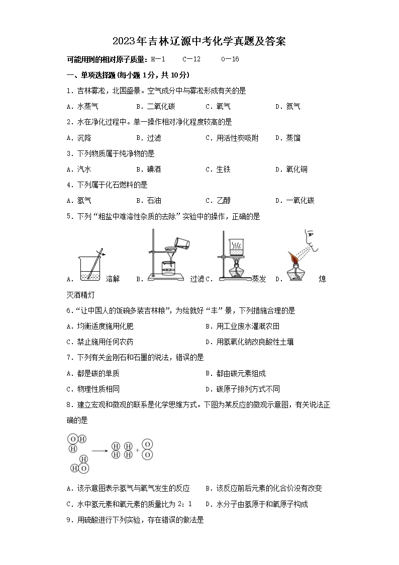 2023年吉林辽源中考化学真题及答案(Word版)07-11