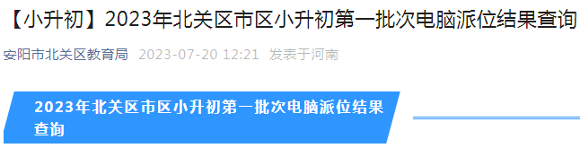 点击进入:2023年河南安阳北关区市区小升初第一批次电脑派位结果查询入口