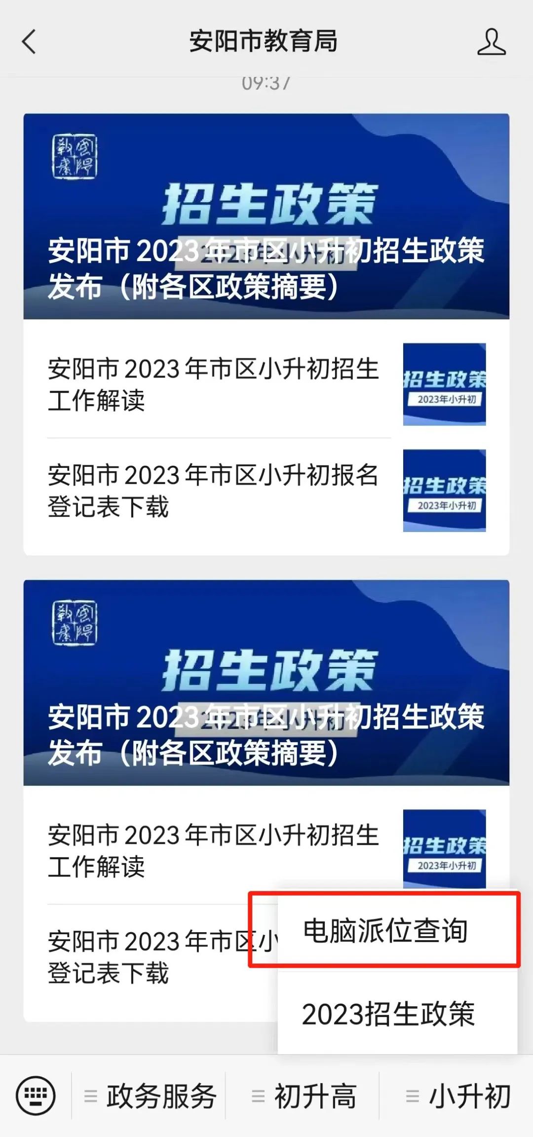 3.安阳市北关区教育局微信公众号:“便民服务”—“电脑派位查询”。