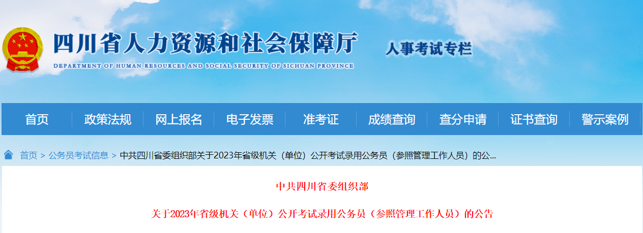 原文标题:中共四川省委组织部关于2023年省级机关(单位)公开考试录用公务员(参照管理工作人员)的公告