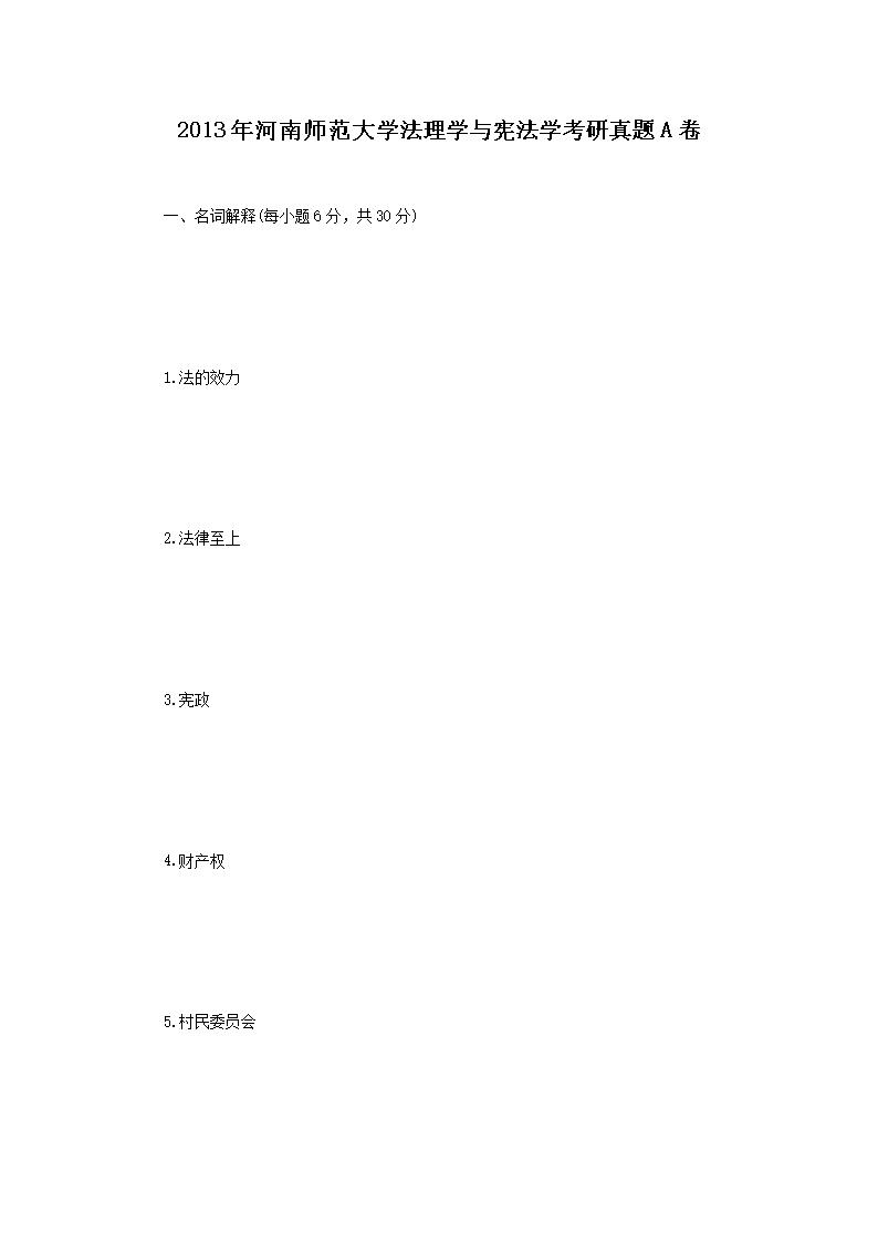 2013年河南师范大学法理学与宪法学考研真题A卷(Word版)06-16