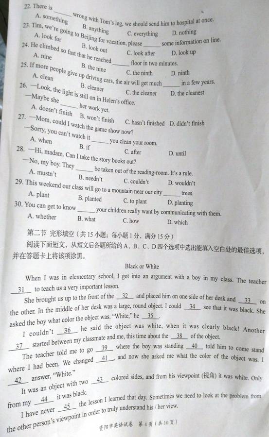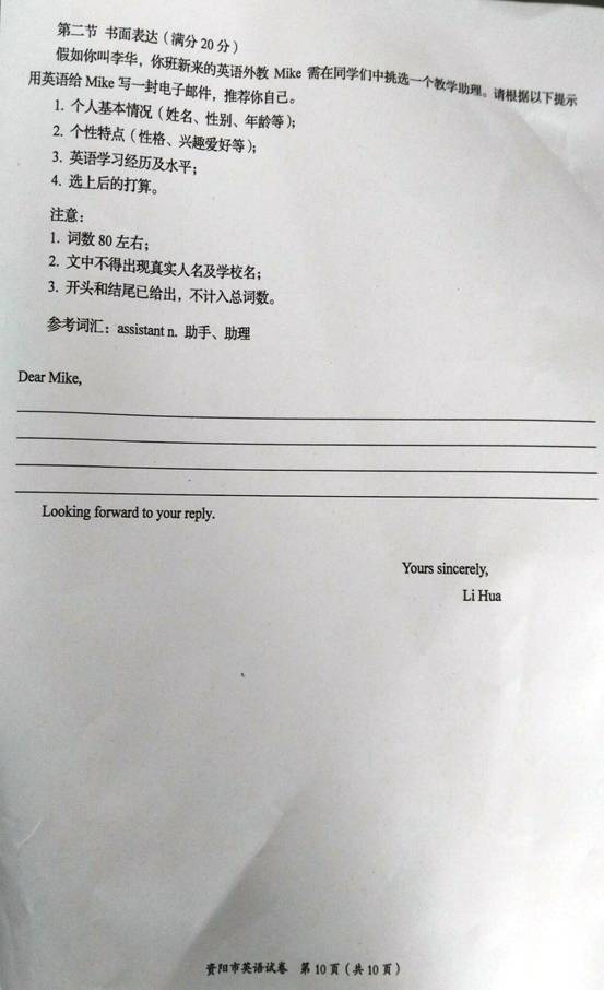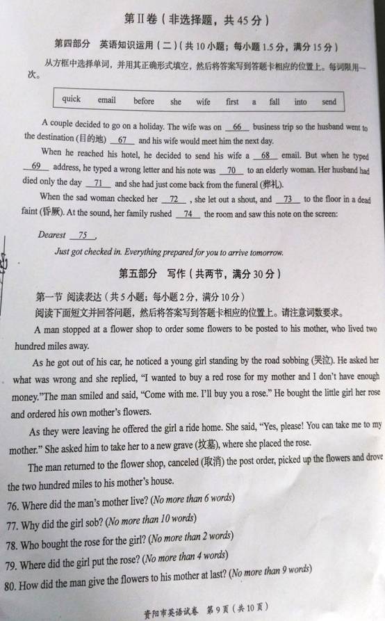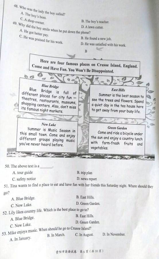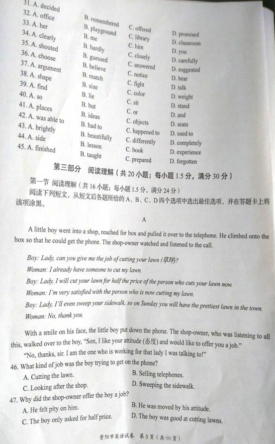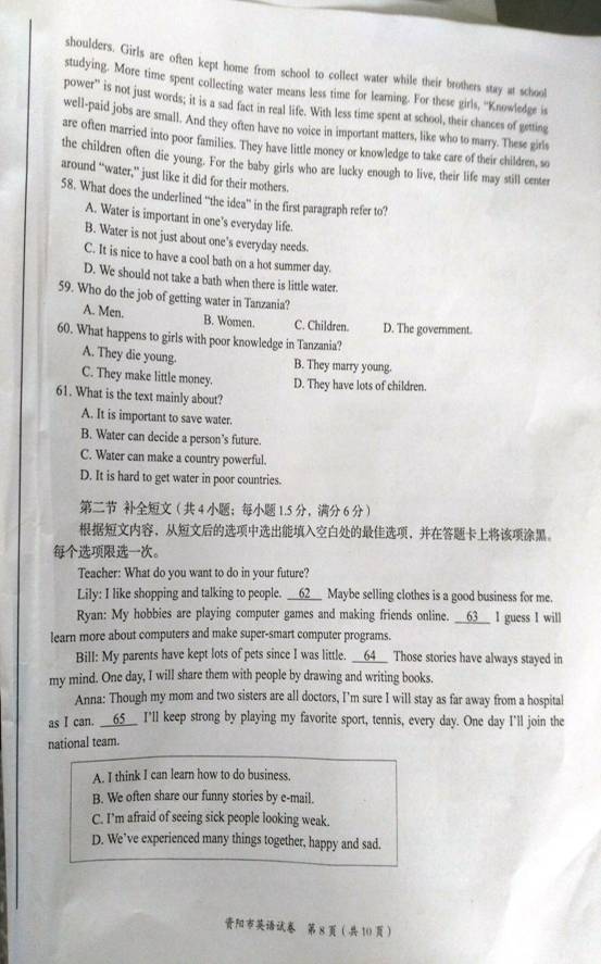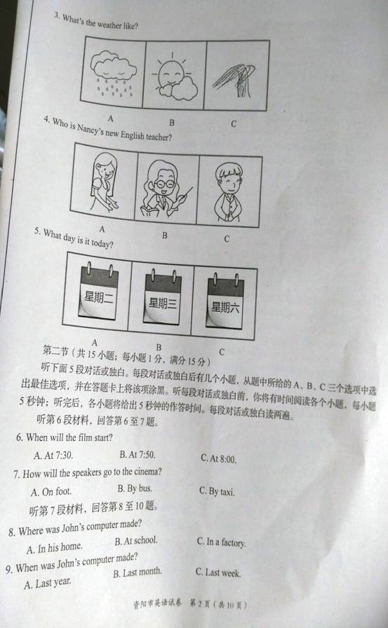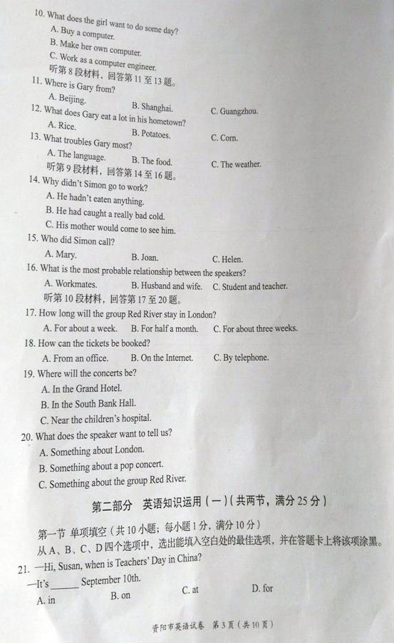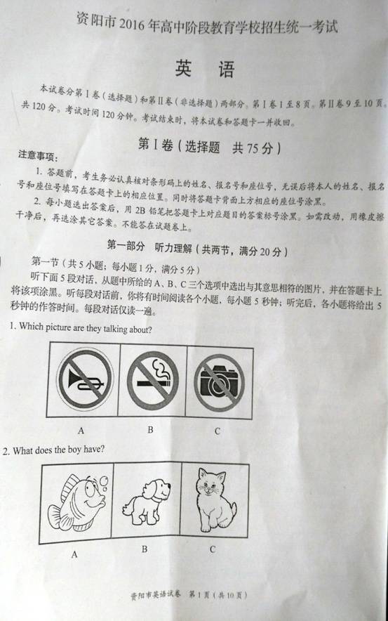 2016四川资阳中考英语试题(已公布)03-09