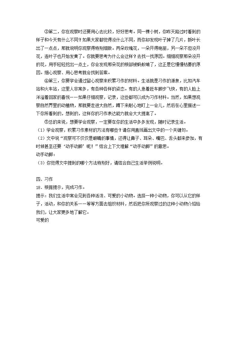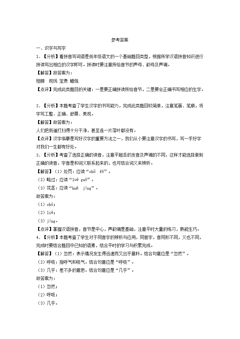 2020-2021学年北京市东城区三年级上学期期末考试语文试卷及答案(Word版)06-29