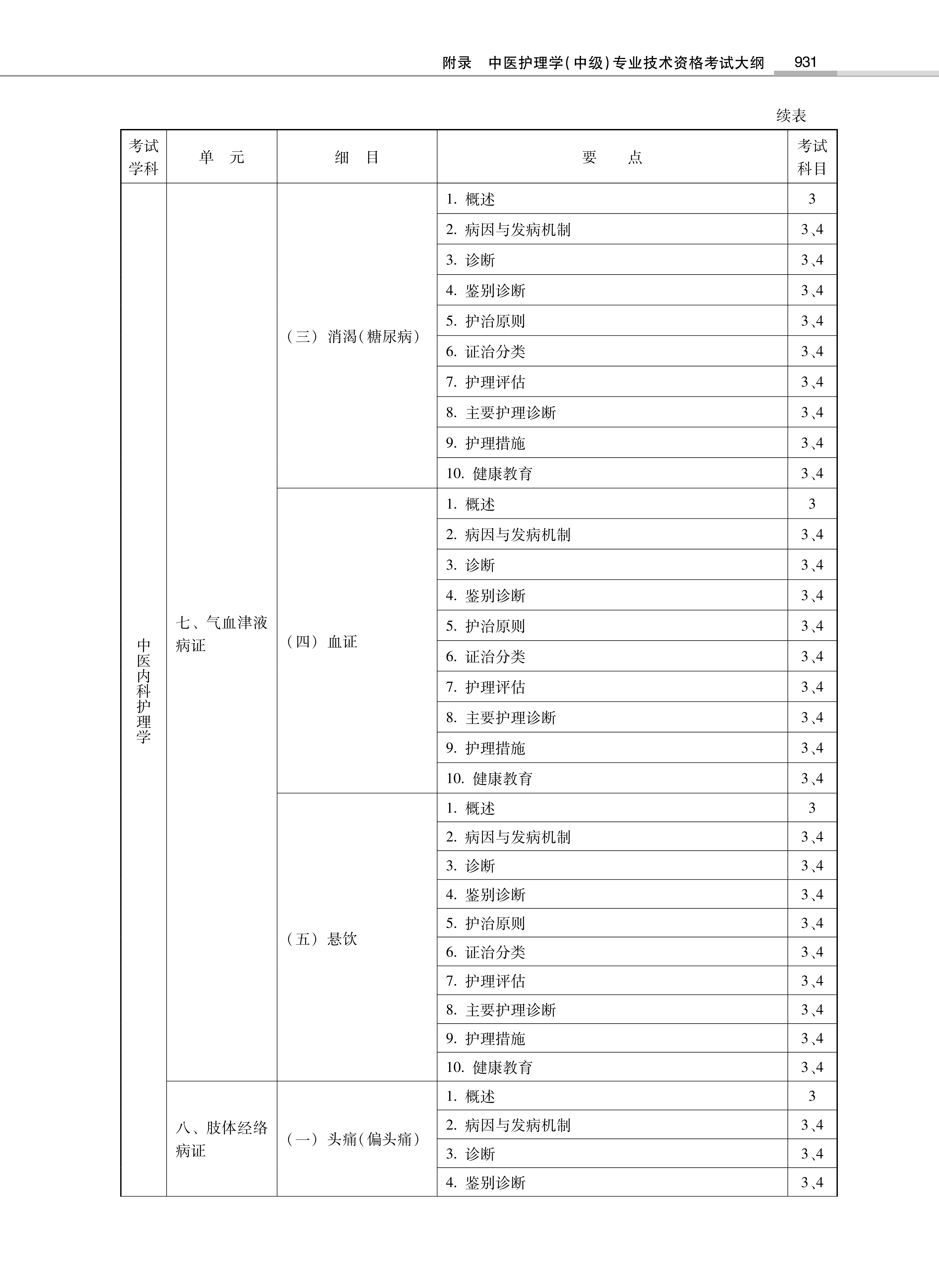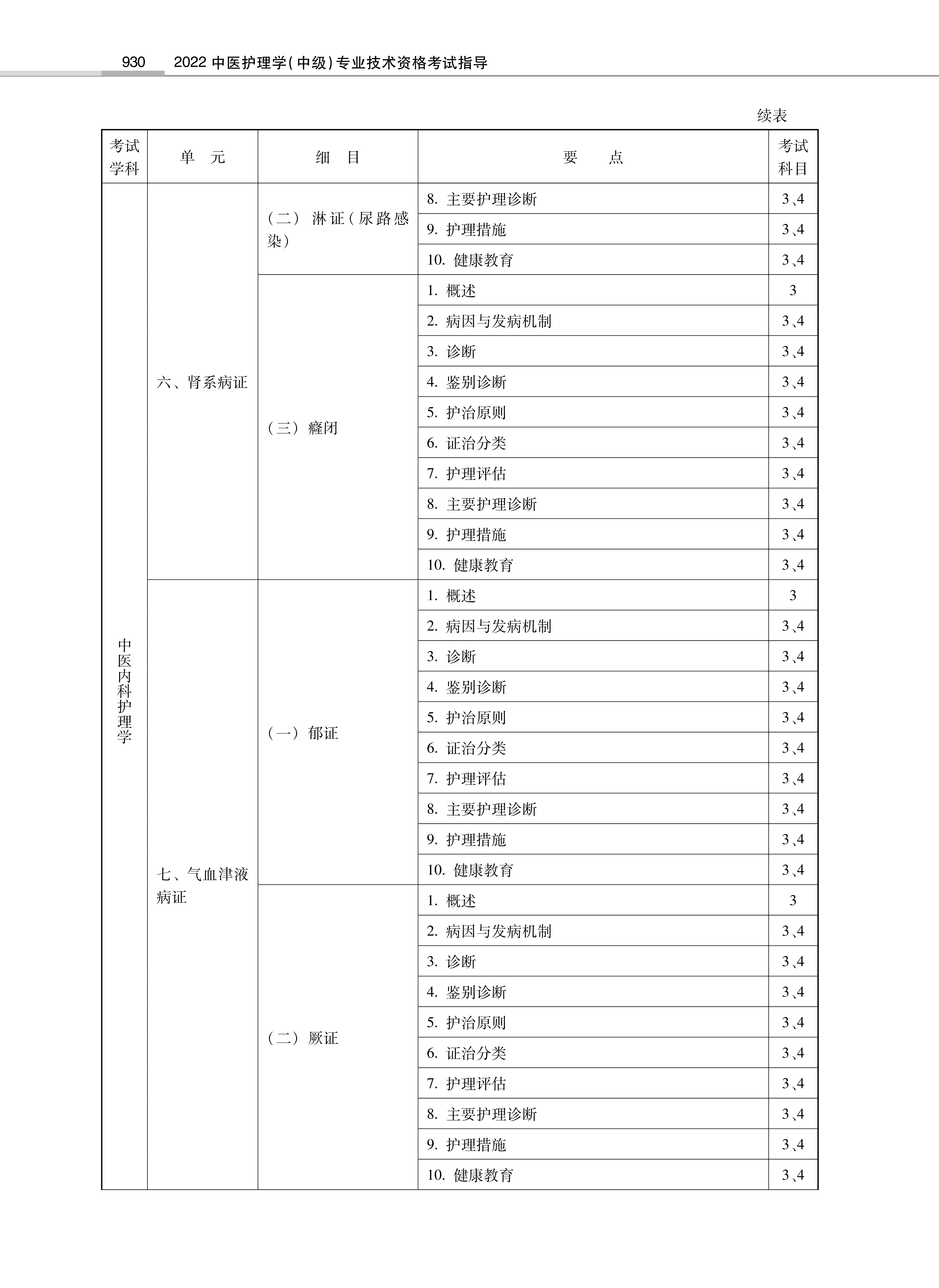 2022年卫生专业技术资格考试大纲-中医护理学(中级)06-05