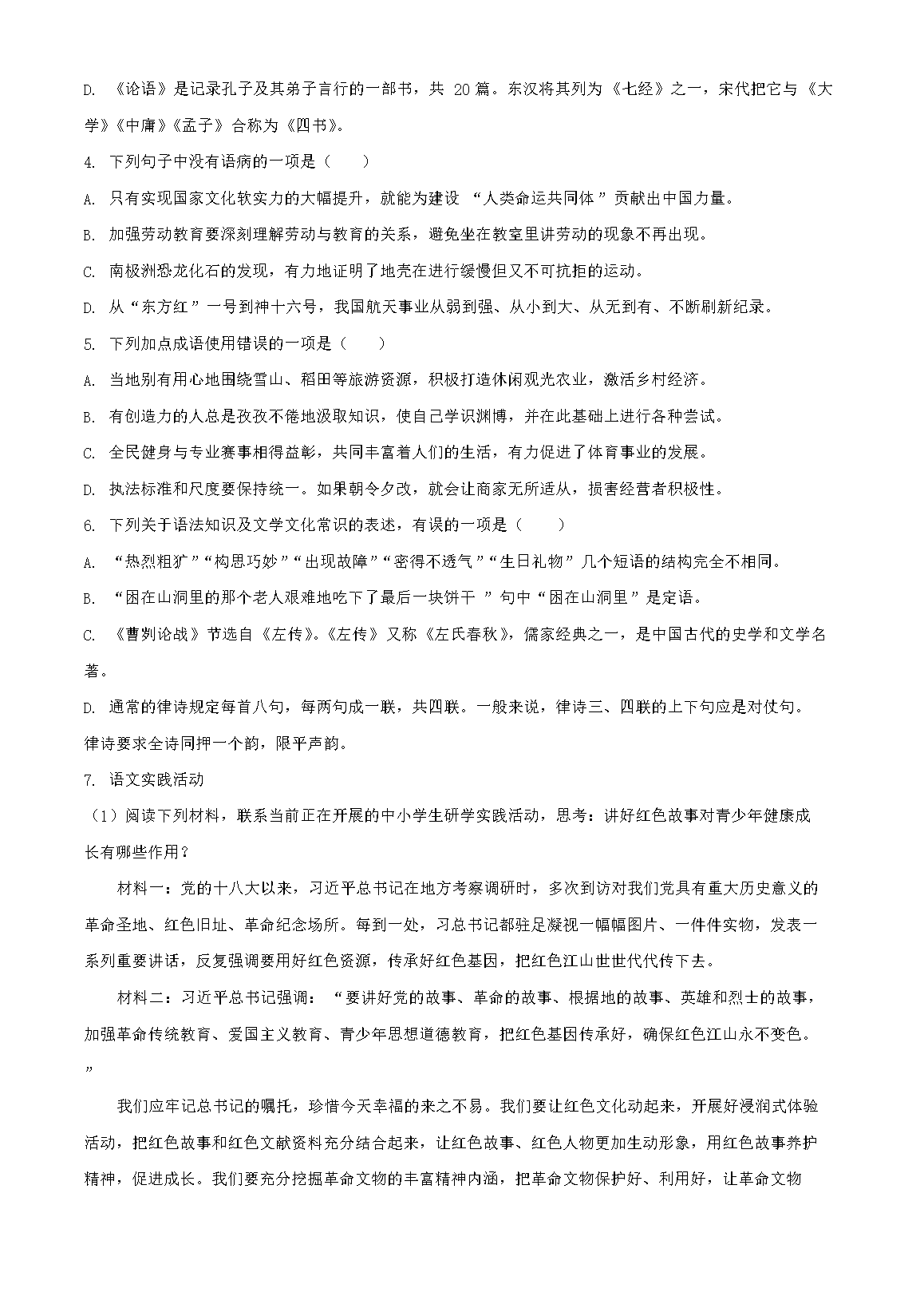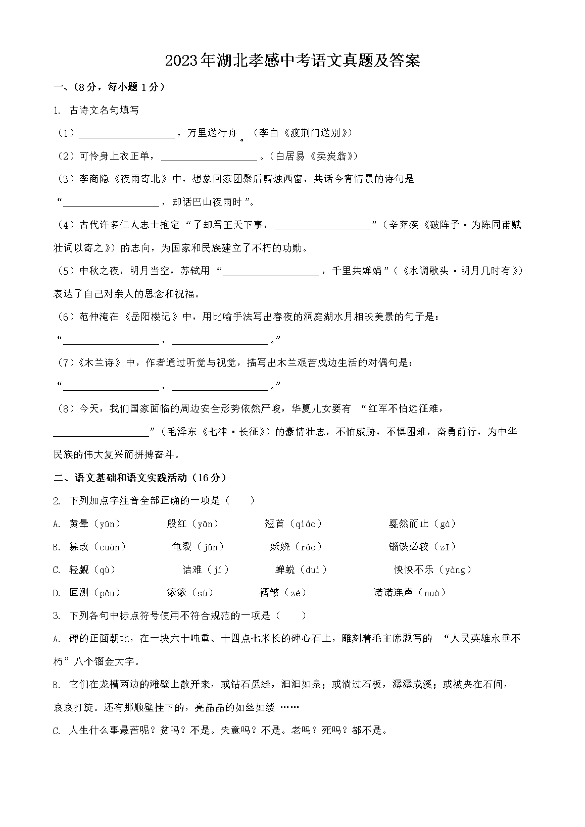 2023年湖北孝感中考语文真题及答案(Word版)07-18