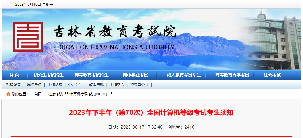 【#计算机等级# 导语】®文档大全网从吉林省教育考试院获悉,2023年9月吉林计算机等级报考时间现已公布,报名时间:6月21日-7月2日,考试时间:9月23日-25日,现将吉林计算机等级考试官方公告原文发布如下: